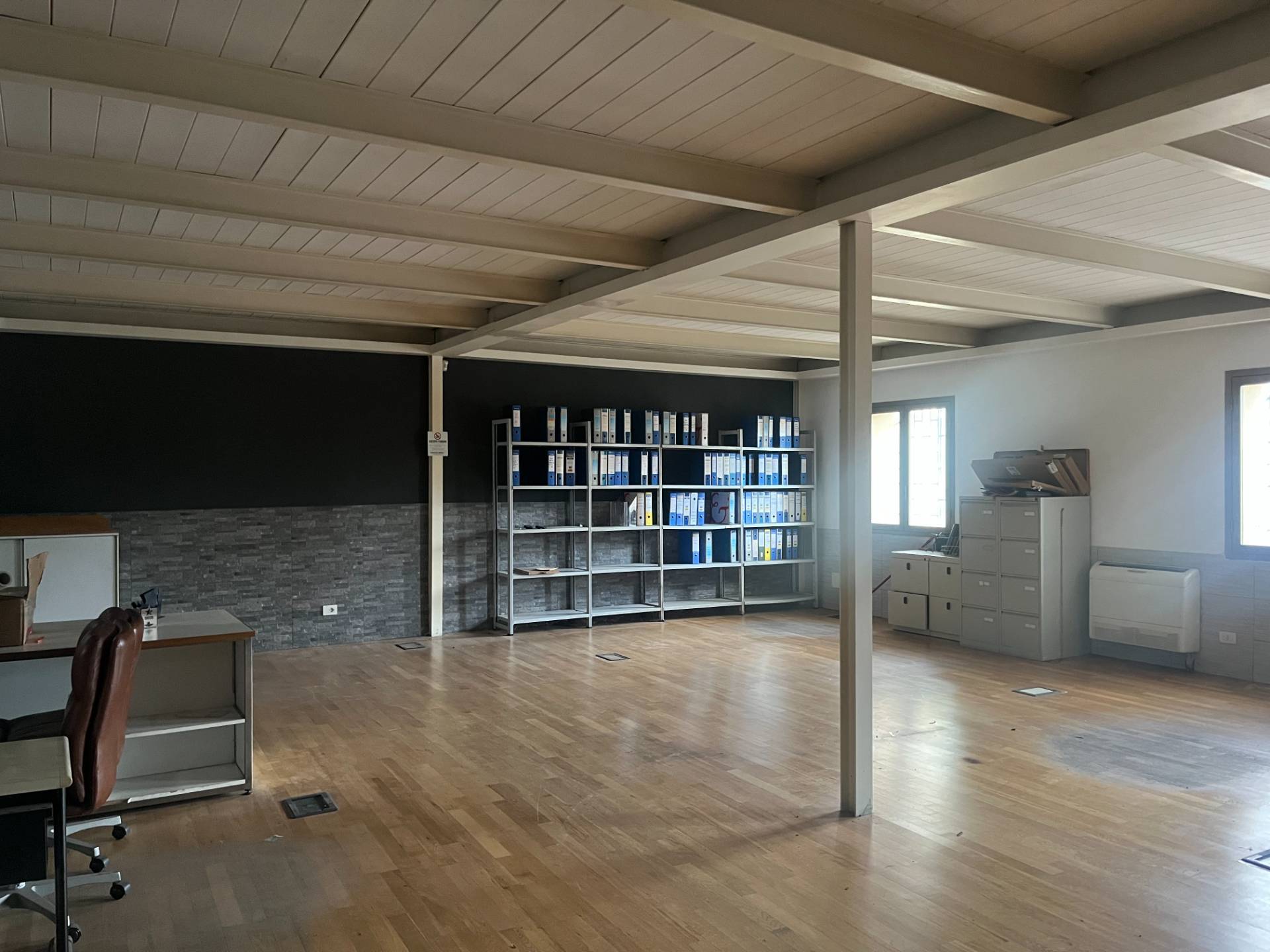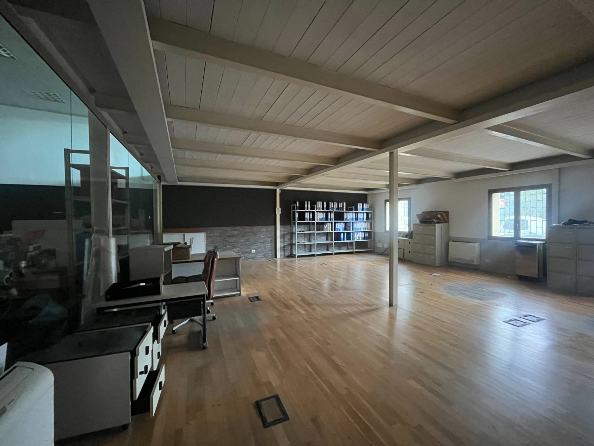 La struttura si sviluppa su due piani, il che la rende ideale per ospitare uffici, laboratori o magazzini, al piano terra troviamo la zona produzione con altezze del soffitto di 3,00 mt, una comoda scala ci conduce al soppalco regolare con altezza di 2,60 mt questa zona ideale per la zona offici.