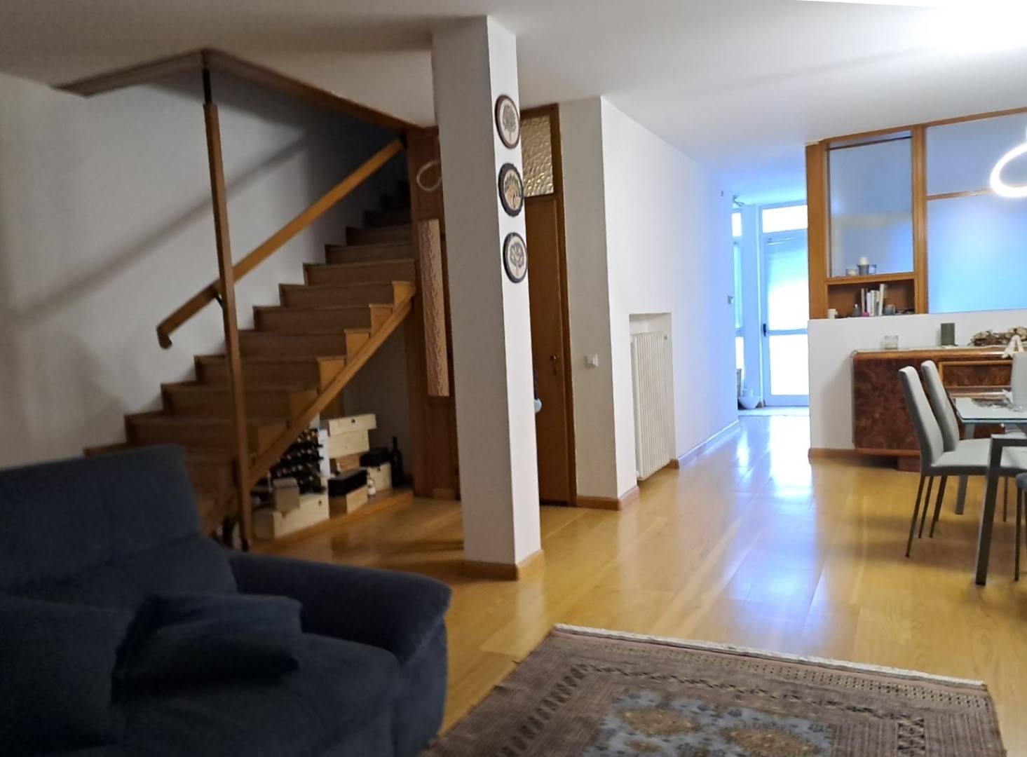 Al secondo piano l'appartamento che si sviluppa su tre livelli con l'ampio salone-sala da pranzo con stufa a legna, una cucina attrezzata, un bagno e la terrazza e un bagno; dalla scala interna il legno sii accede al piano superiore con le tre camere da letto, il bagno e un terrazzo e quindi, salendo al piano sottotetto, un'altra camera con bagno oltre che a due vani ad uso soffitta e stenditoio.