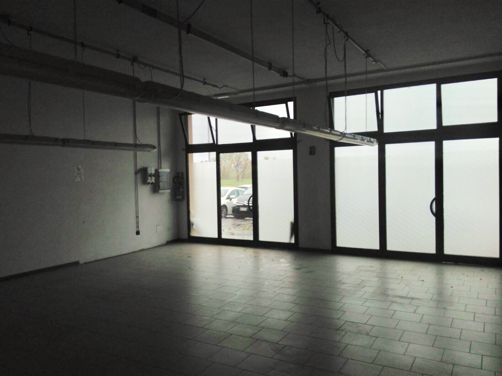 La pavimentazione in ceramica e infissi in legno ( tranne la vetrina ). Molto luminoso e con un ampio parcheggio adiacente.