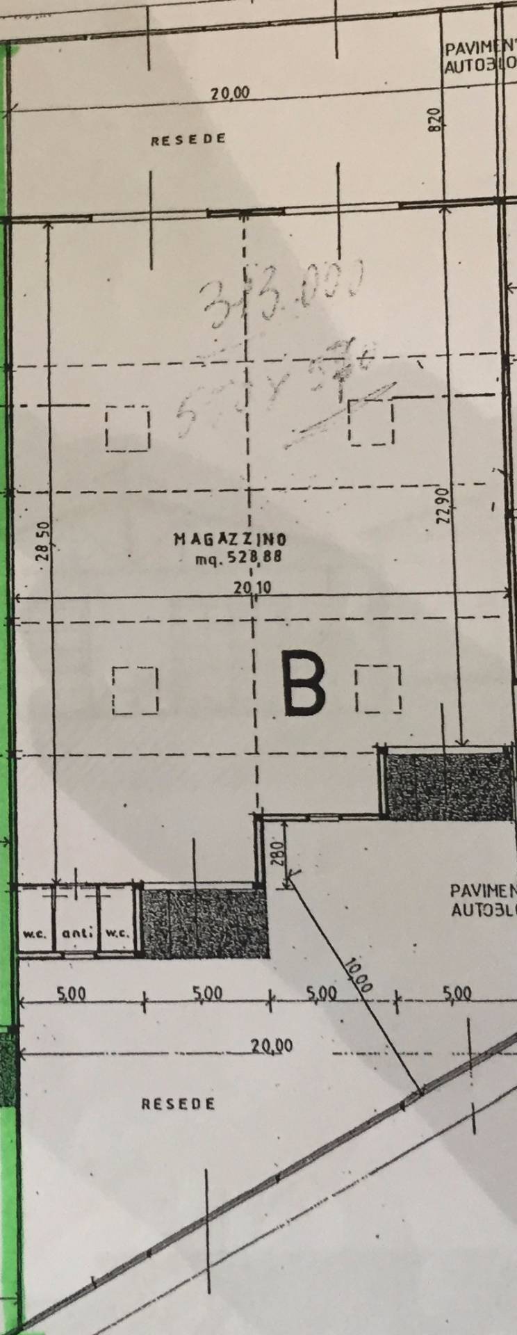 Capannone di 528,88 mq con ufficio, 2 bagni con una doccia, 2 spogliatoi.