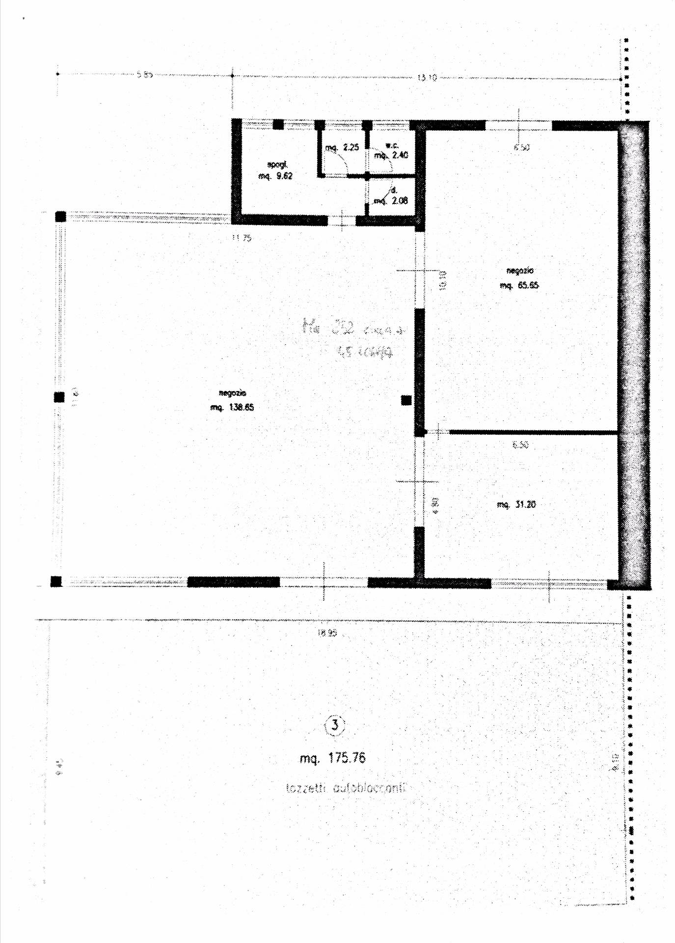 Capannone composto da: ampia stanza mq 136,65 c.a, una di mq 65,65 c.a ed una mq 31,20 c.a , spogliatoio, antibagno, bagno e ripostiglio.