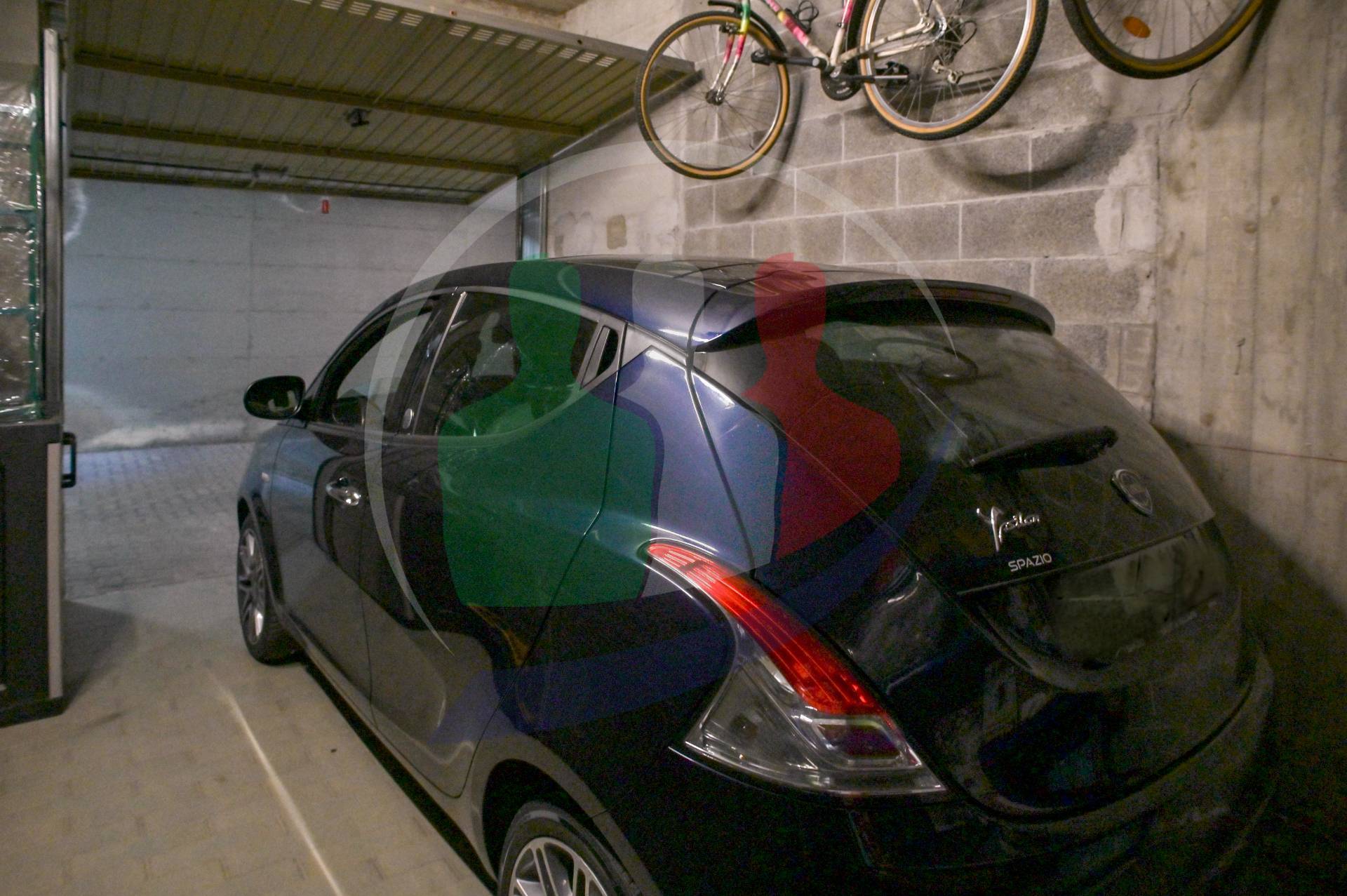 Il garage si trova al piano seminterrato, con accesso comodo da cancello automatico e corsia di manovra ampia e agevole.