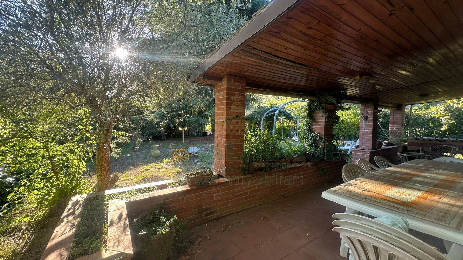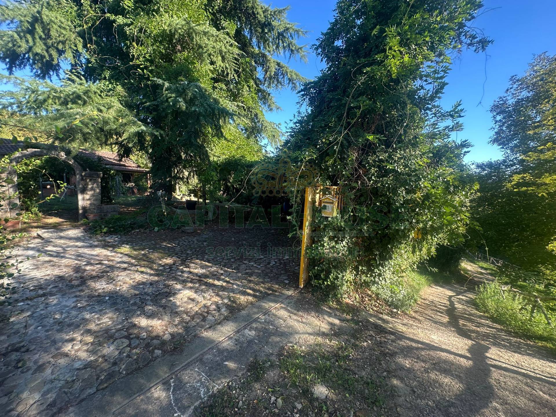 Un vialetto, introdotto da un elegante arco in pietra antica, ti accompagna al portico dingresso che apre le porte su una casa accogliente e dal gusto autentico.