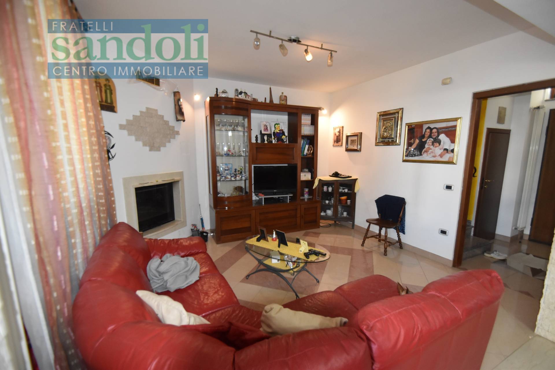 La casa posto su due livelli collegati con scala in marmo; al piano terreno troviamo un'ampia zona giorno con ingresso, soggiorno con camino funzionanate, cucina abitabile, bagno e comodo ripostiglio nel sottoscala; al piano superiore abbiamo un disimpegno che accompagna alla zona notte caratterizzata da una camera matrimoniale, una camera da letto singola spaziosa, bagno, ripostiglio e balcone.