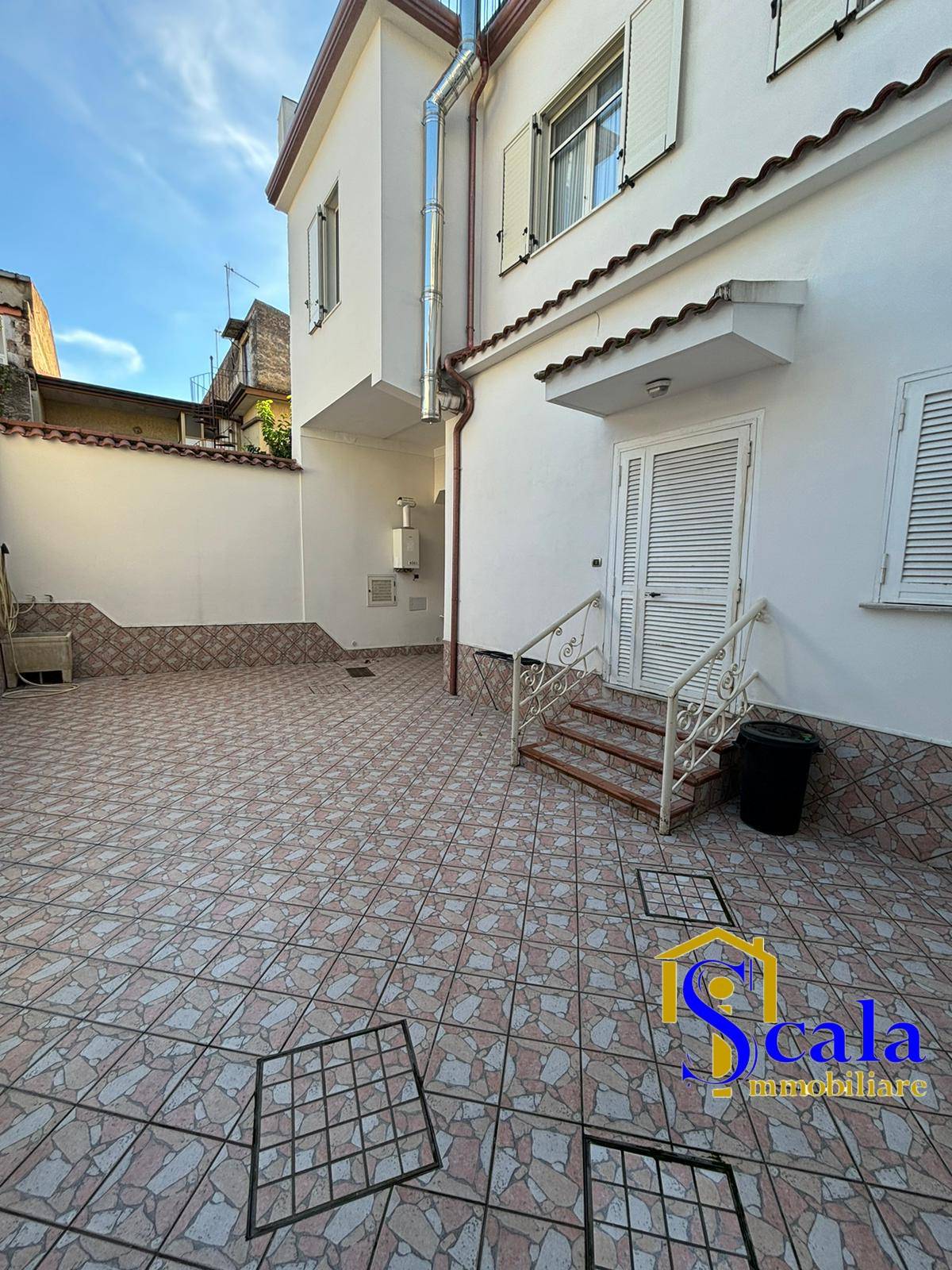PIANO RIALZATO: Appartamento di 95 mq composto da: salone, cucina abitabile con camino, angolo cottura, due camere da letto, doppi servizi e balcone di circa 15 mq. PRIMO PIANO: Appartamento di 110 mq composto da: ingresso, salone cucina unico ambiente con stufa a pellets, 3 camere da letto, studio, doppi servizi e balcone di 20 mq. A completare la soluzione: cortile di 70 mq, sottotetto di circa 100 mq, cantina di 20 mq, zanzariere, inferriate e condizionatori.