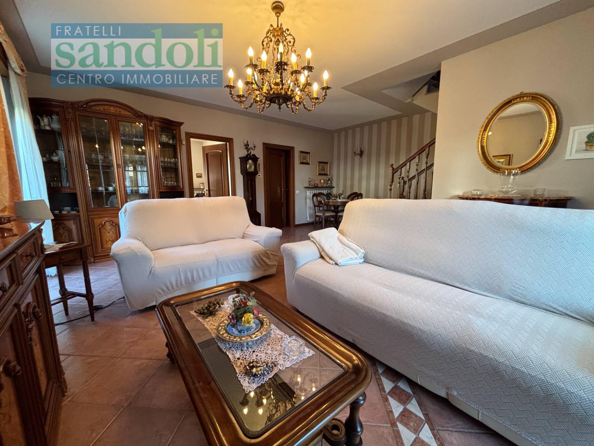 Il piano superiore ospita una soffitta e una cantina, mentre al piano seminterrato sono presenti due posti auto coperti e un'ampia cantina ad uso tavernetta.