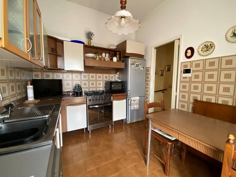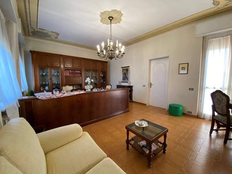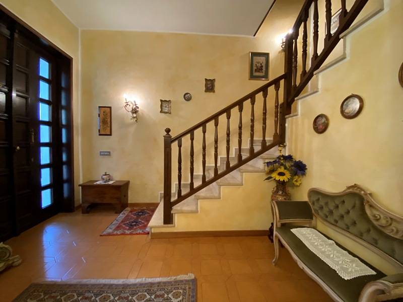 Lappartamento principale composto da un accogliente ingresso con ripostiglio e grande scala in marmo che accompagna al piano superiore dove si trovano, sviluppati in 120 mq, una cucina abitabile, bagno di servizio, ampio soggiorno, due camere, altro bagno ed un comodo balcone di 27 mq accessibile da tutti i locali.