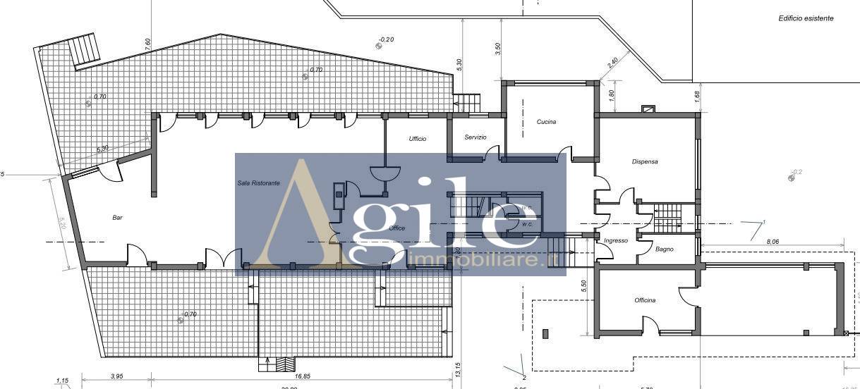 Intero stabile in vendita a Porto D'Ascoli in zona centrale - Rif. 2228 SAN BENEDETTO DEL TRONTO (AP) A Porto d'Ascoli in ottima posizione lungo la strada statale in zona commerciale e altamente visibile ad alto traffico veicolare, unit immobiliare indipendente su quattro lati della superficie totale di circa mq 630 disposto su due livelli.