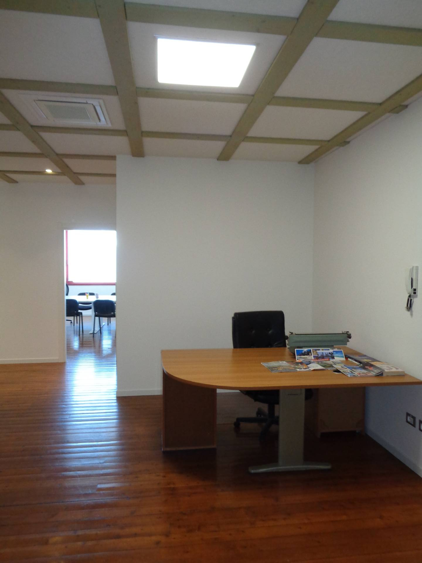 L'immobile suddiviso in diverse zone: Ingresso di circa 10-12 mq. ,in cui presente una scrivania per il ricevimento della clientela; proseguendo troviamo una luminosa sala riunione di circa 18-20 mq.; inoltre presente un'ampia zona lavoro che pu essere ulteriormente divisa in pi ambienti ed una stanza adibita ad ufficio.