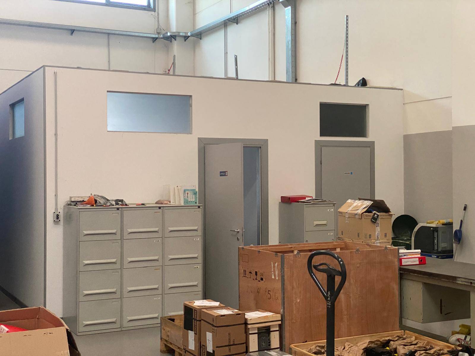 Proponiamo capannone/laboratorio con ufficio di circa 24 mq realizzato in cartongesso con impianto di condizionamento (caldo/freddo), ampio ripostiglio/stanza server/spogliatoio, bagno con doccia, impianto elettrico a norma (220 e 380 V), impianto d'allarme, impianto fotovoltaico (contratto con scambio sul posto), velux elettrici e portone dotato di chiusura di sicurezza.