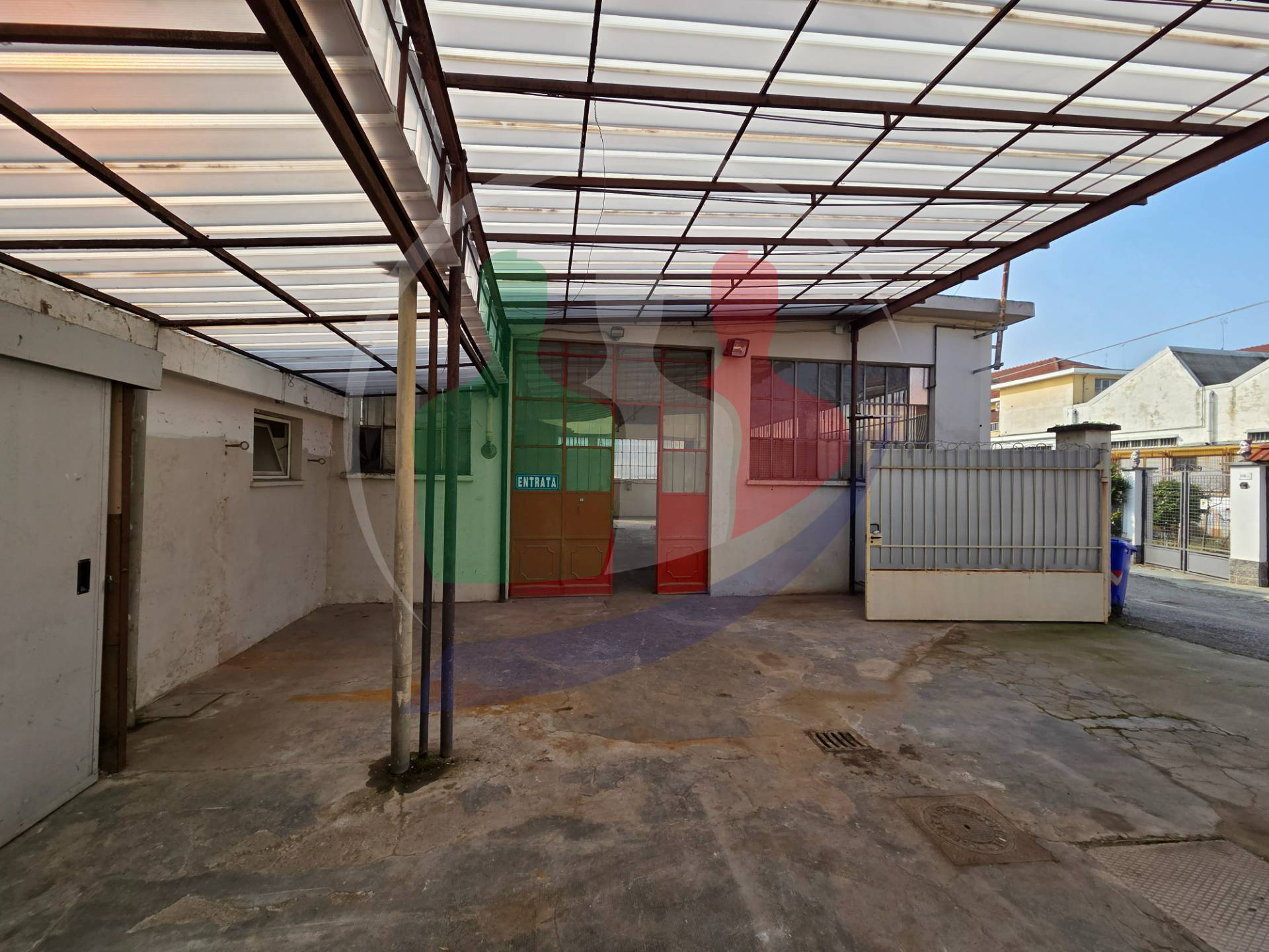MONCALIERI: Via Pastrengo 114/2, affittasi spazioso laboratorio di 200 m con accesso carraio su ampia tettoia aperta di 75 mq, fabbricato openspace di circa 150 mq (altezza minima 3,60 m, altezza massima 4,30 m), locale ufficio di 22 mq con climatizzatore, locale cantina al piano seminterrato di circa 15 mq. Sono presenti un bagno di servizio interno ed un bagno esterno.