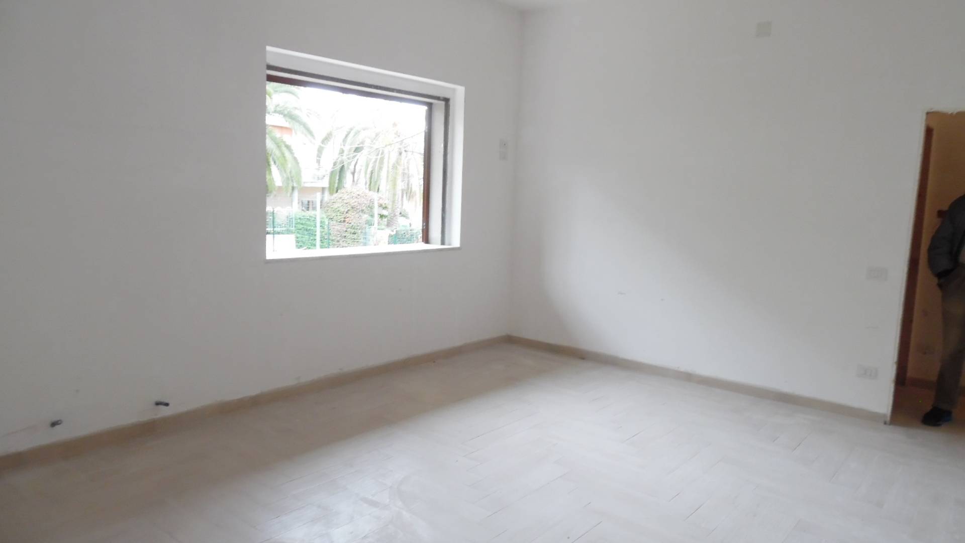 Pavimento uniforme in gress porcellanato, persiane in alluminio.