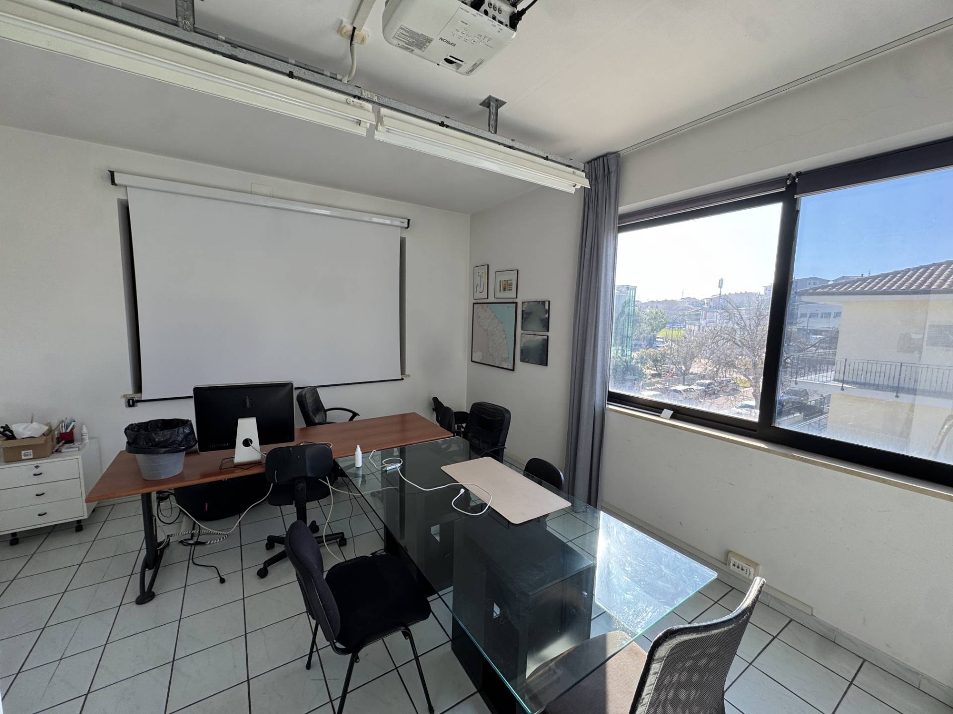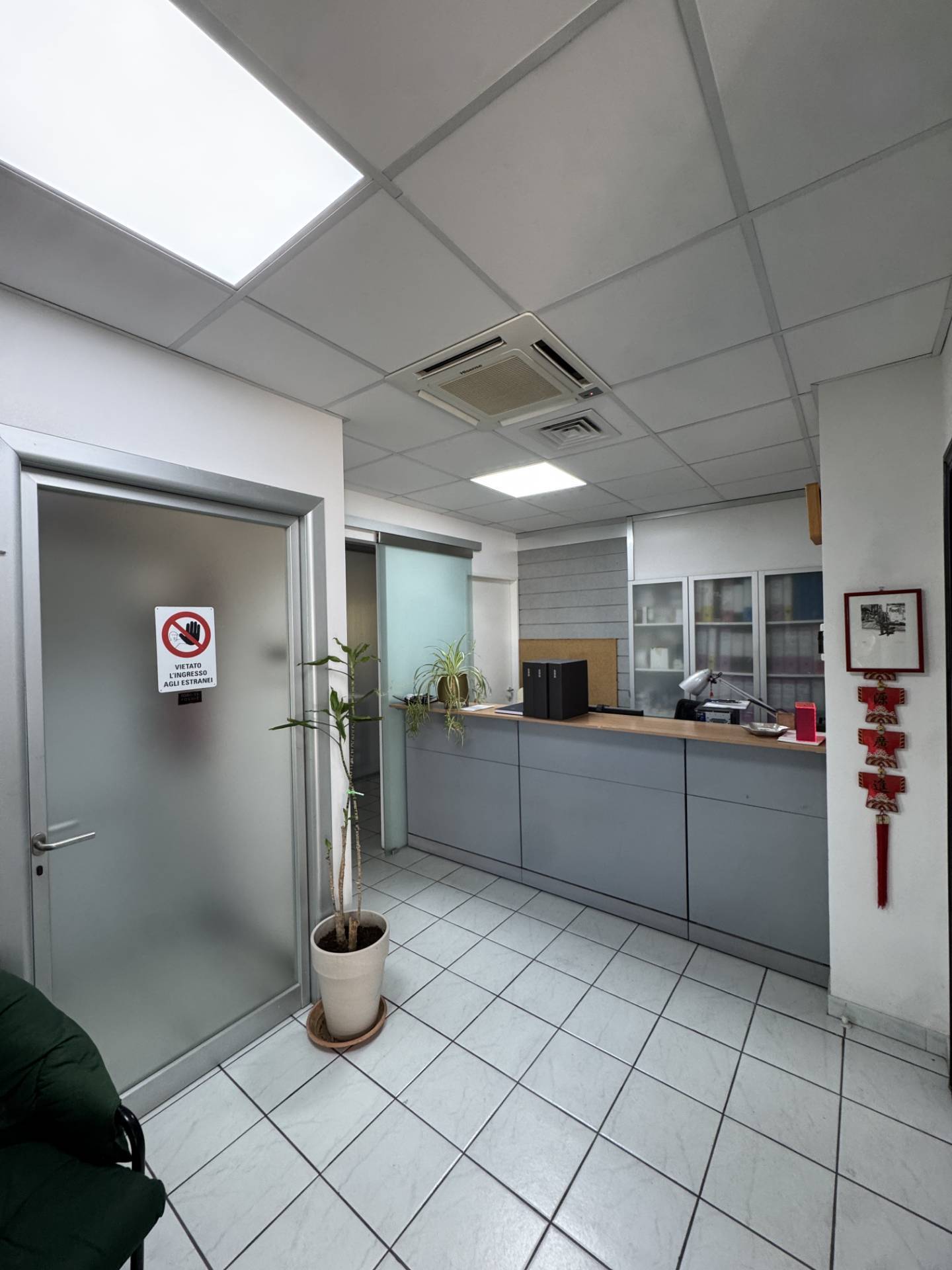 L'immobile attualmente suddiviso con pi uffici con divisori in vetro, completo di reception, sala riunioni, sala relax per la pausa-pranzo, servizi, archivio, deposito e locali tecnici.