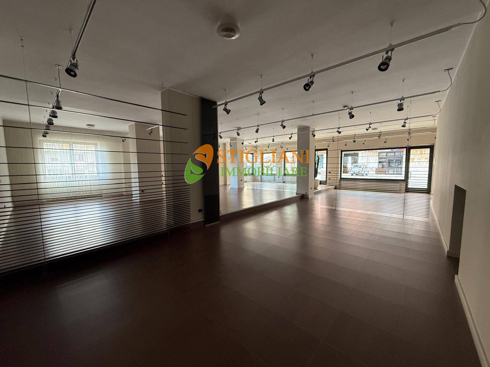 Zona semicentrale, con molta visibilit e traffico pedonale e veicolare, locale commerciale fronte strada, di metri quadrati 210 circa, composto da due ampi vani, bagno e antibagno.