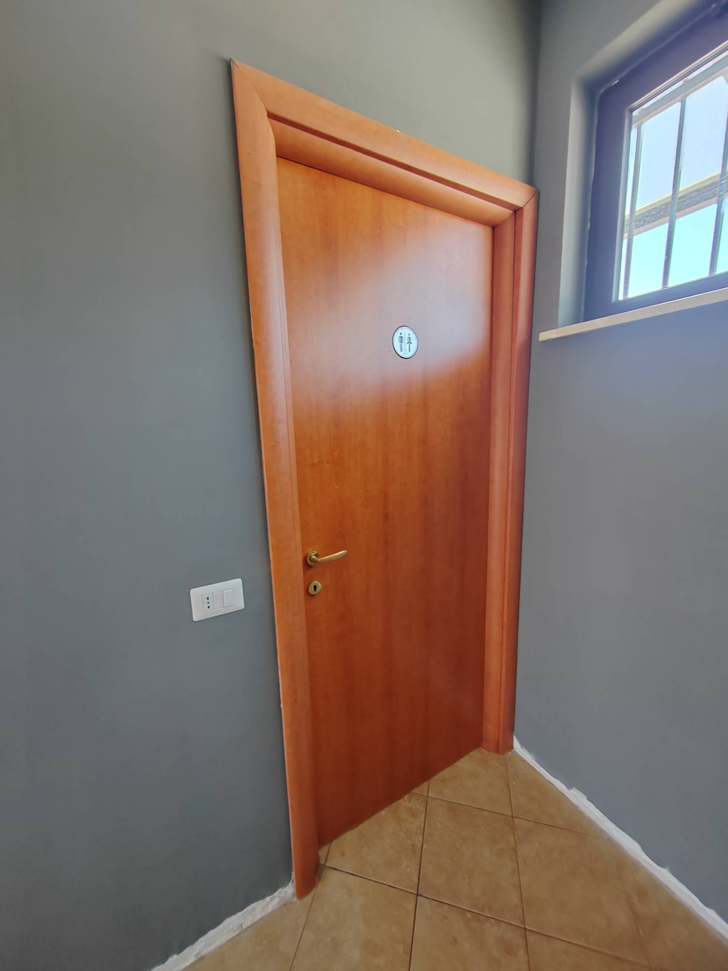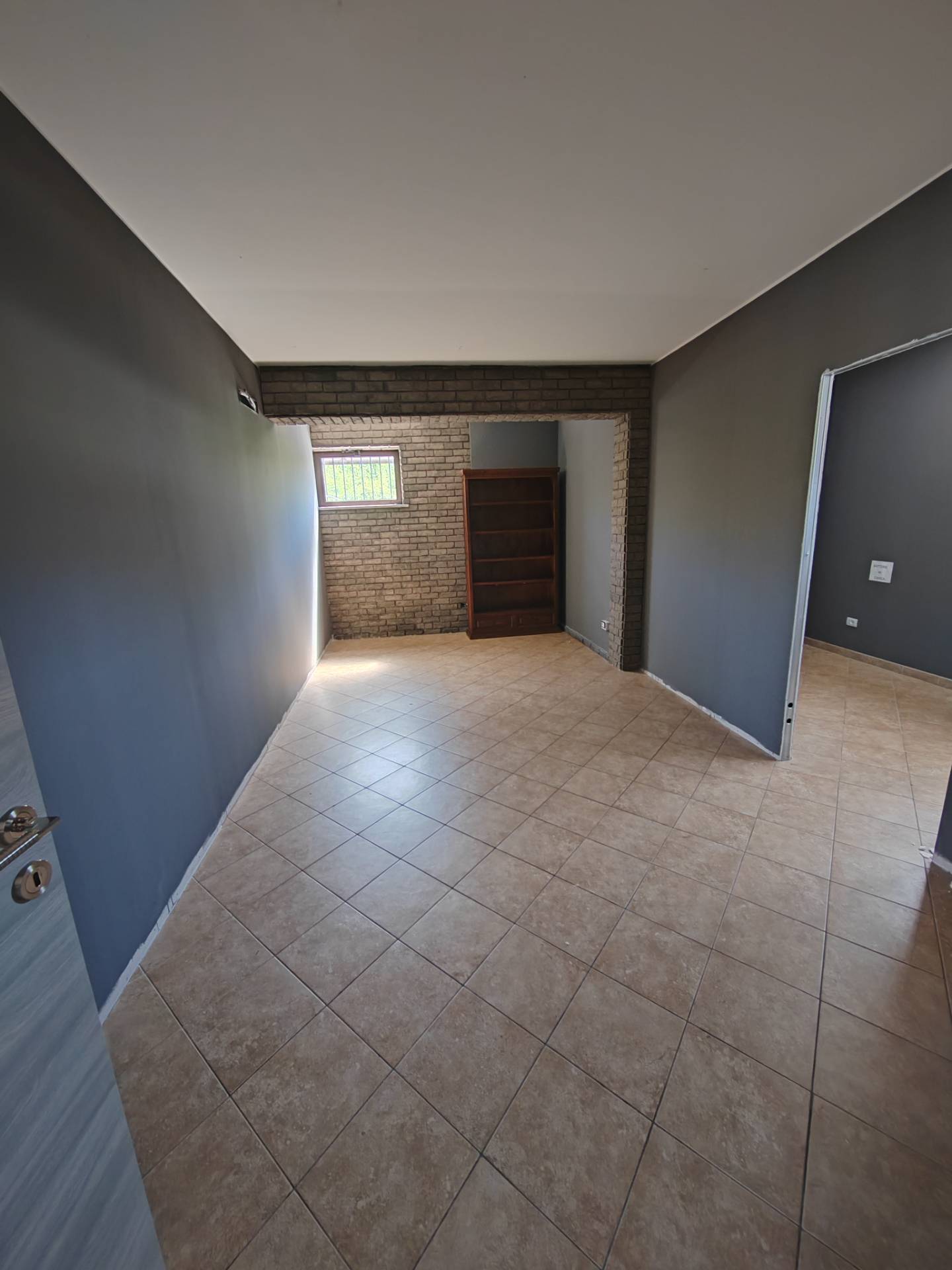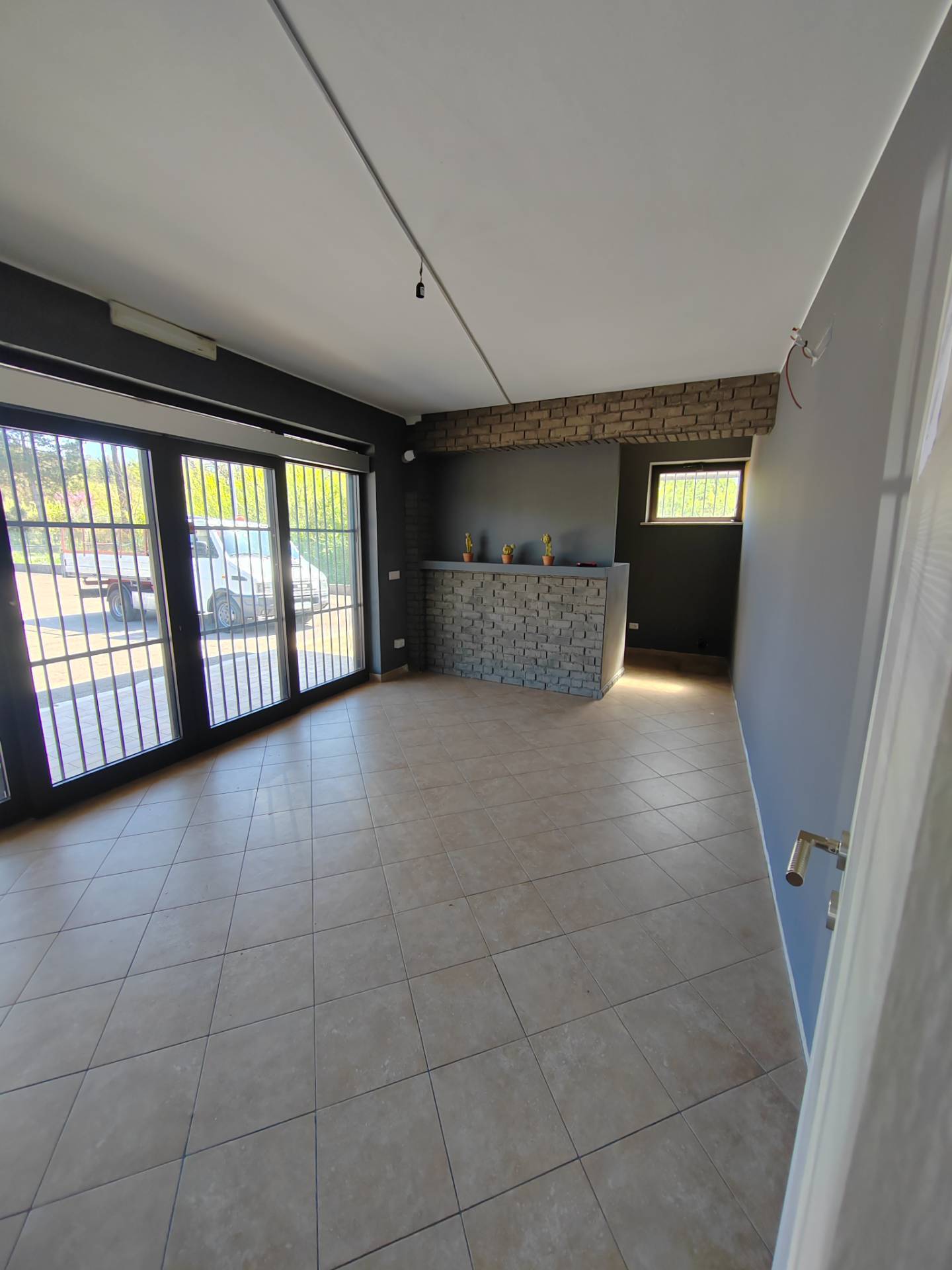 Il locale ha ampie porte finestrate con grate; completo di servizi igienici.