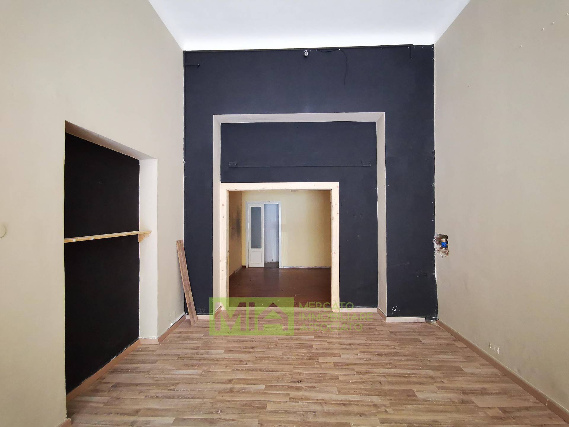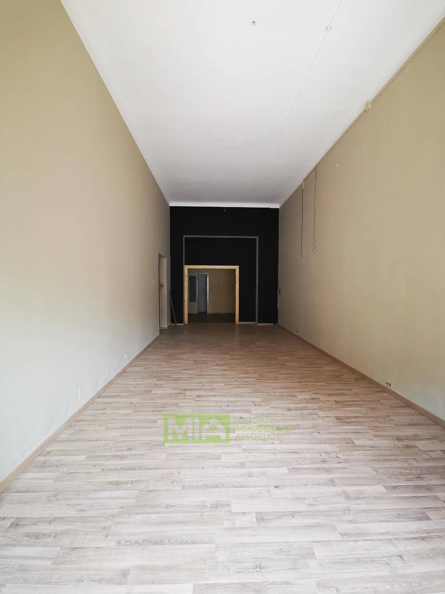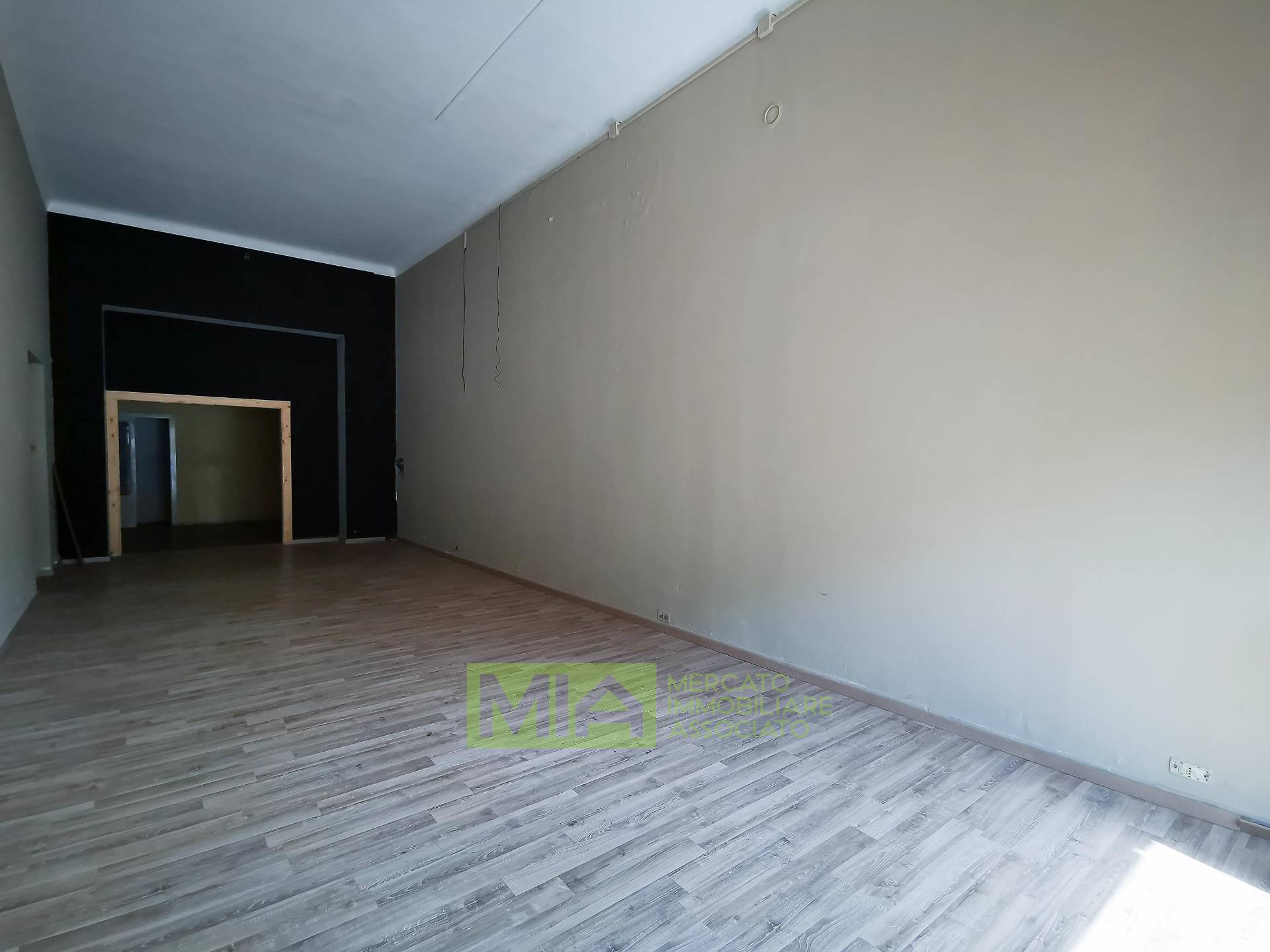 Il locale attualmente propone un'ampissima superficie destinata alla vendita, un'area pi piccola posta sul retro utilizzata quale magazzino e, in continuit con questa, un bagno con antibagno.