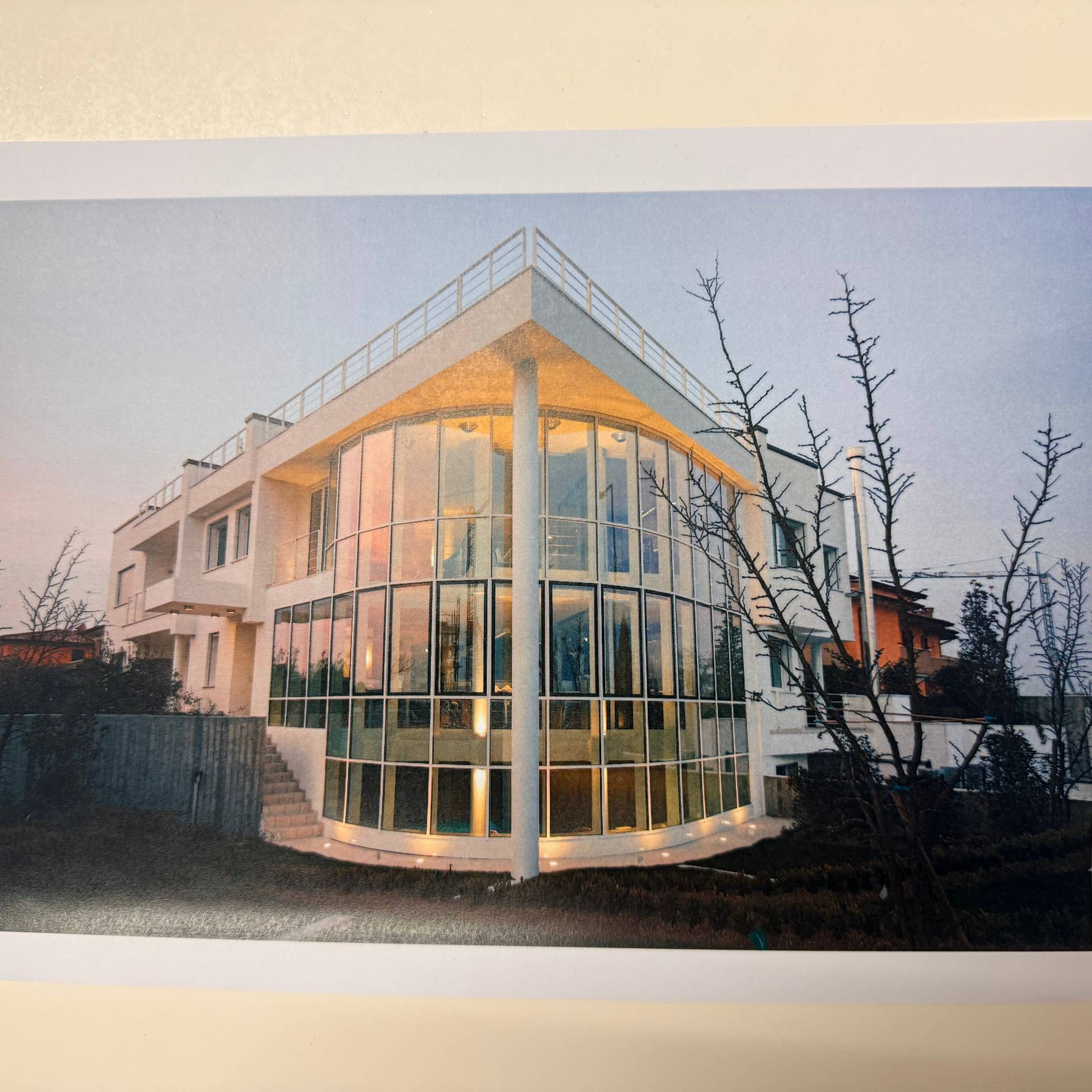 Questa propriet cielo-terra, inserita in un raffinato complesso di sole sette unit dal design minimalista, si distingue per una spettacolare facciata semicircolare in vetro che domina la scena e inonda di luce naturale ogni ambiente.