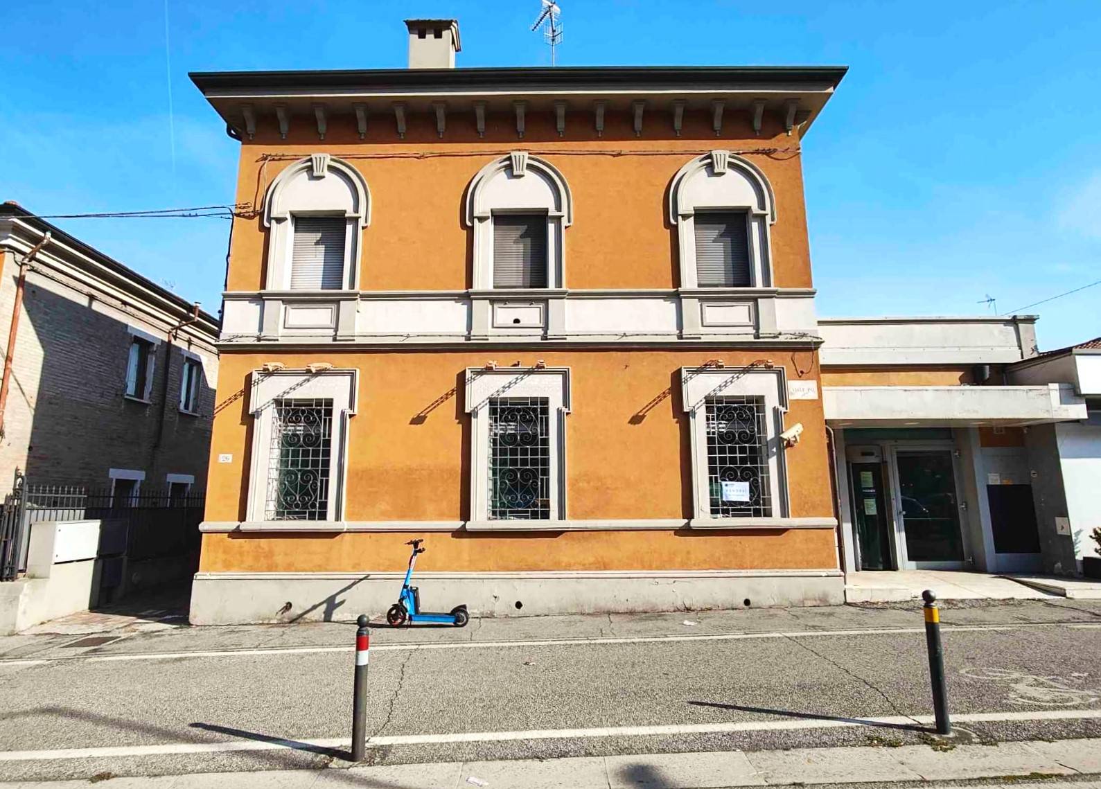 Ferrara ***.*******.** Po, zona altamente servita con massima visibilit e di forte passaggio, vendiamo o affittiamo grande locale al piano terra inserito in contesto di palazzo liberty di inizio '900. Classificato catastalmente D/5 "immobili destinati a istituti di credito, cambio e assicurazione con fine di lucro", l'immobile era occupato fino a poco tempo fa da una banca, ed internamente diviso con pareti vetrate facilmente amovibili se si intende destinarlo ad altri usi; attualmente composto da tre grandi uffici e due bagni, di cui uno per disabili oltre al vano tecnico ad uso ripostiglio.