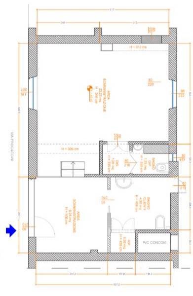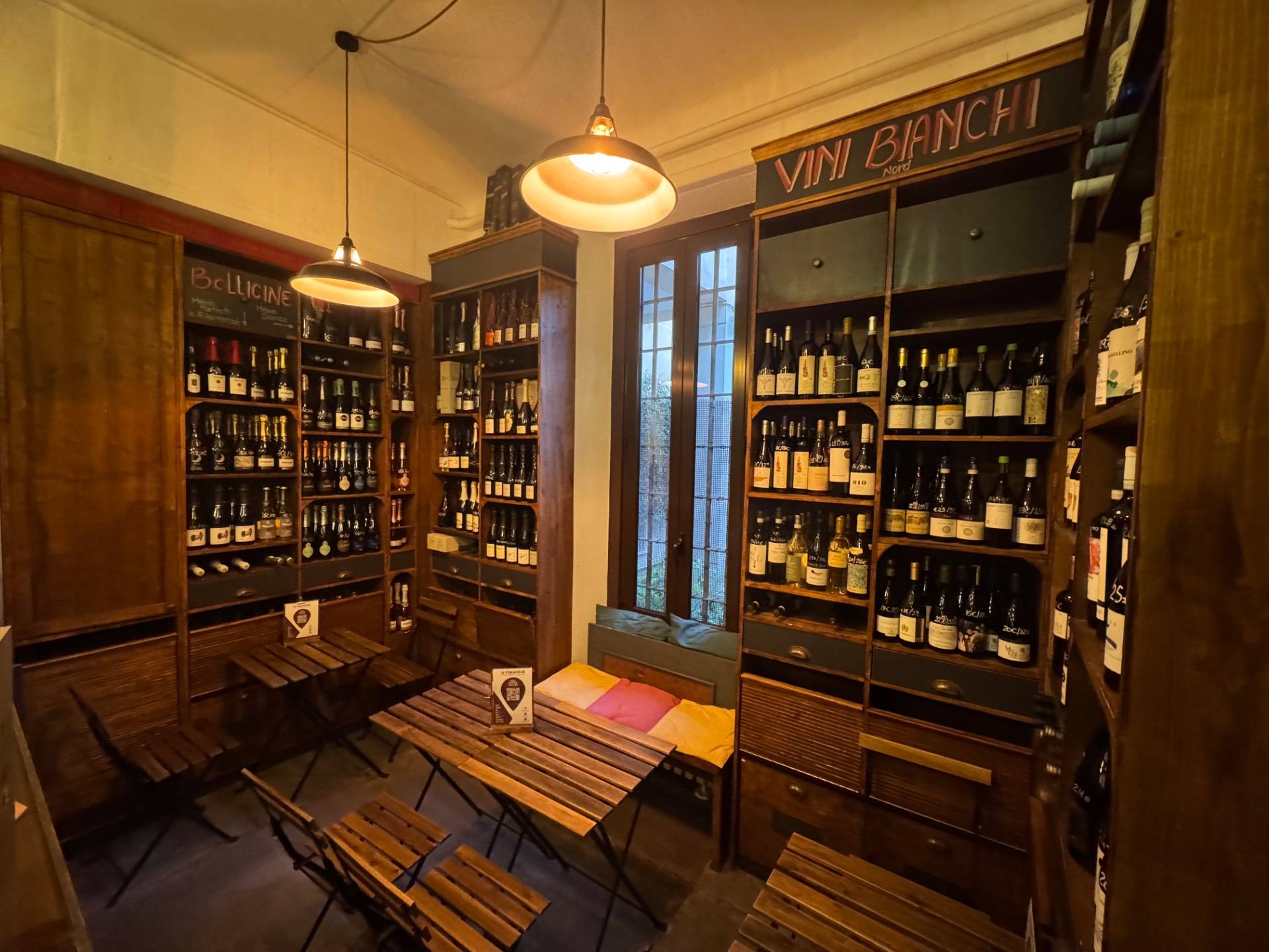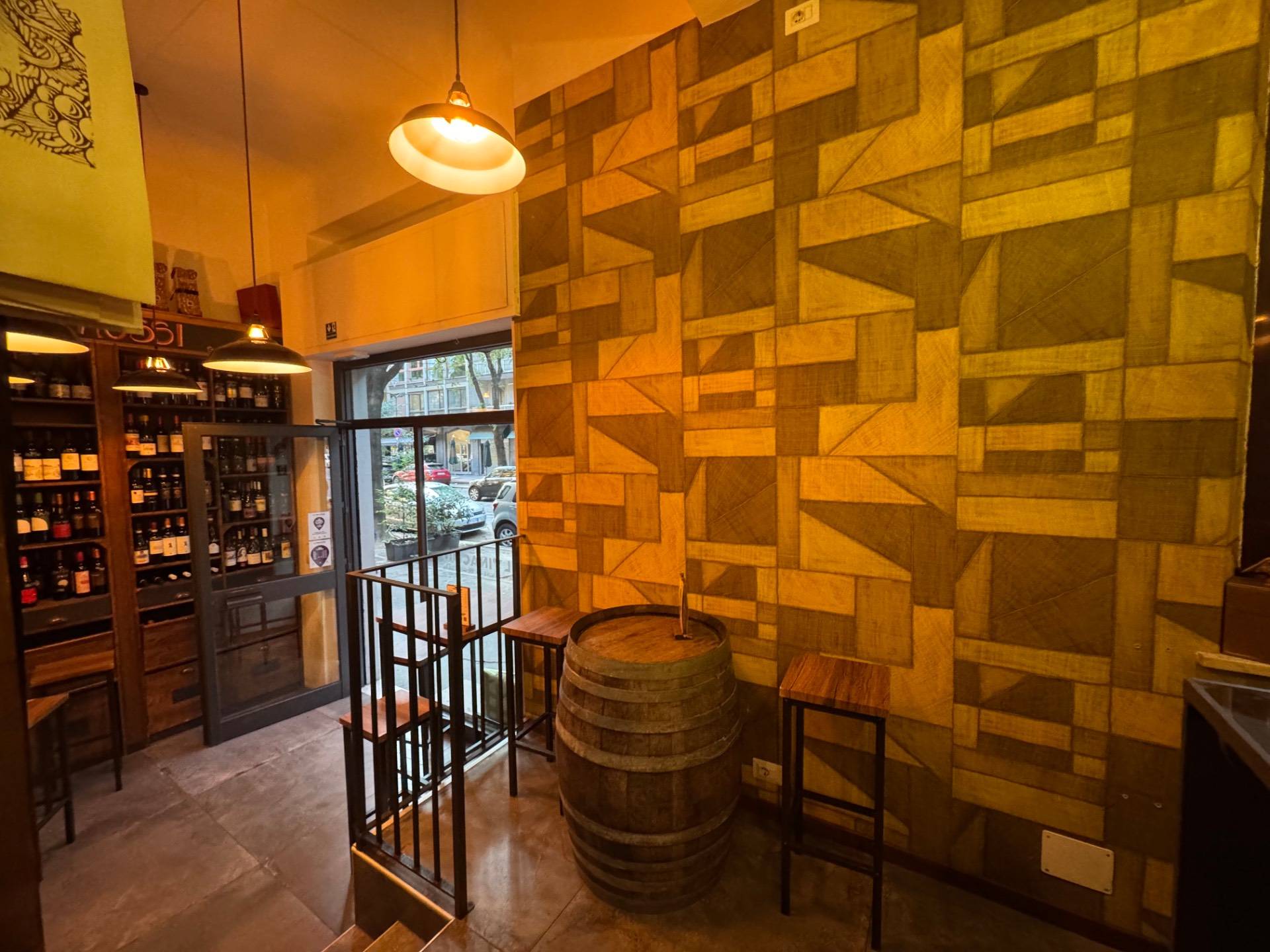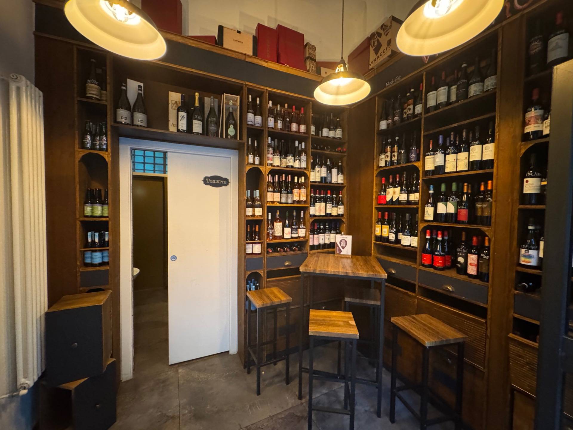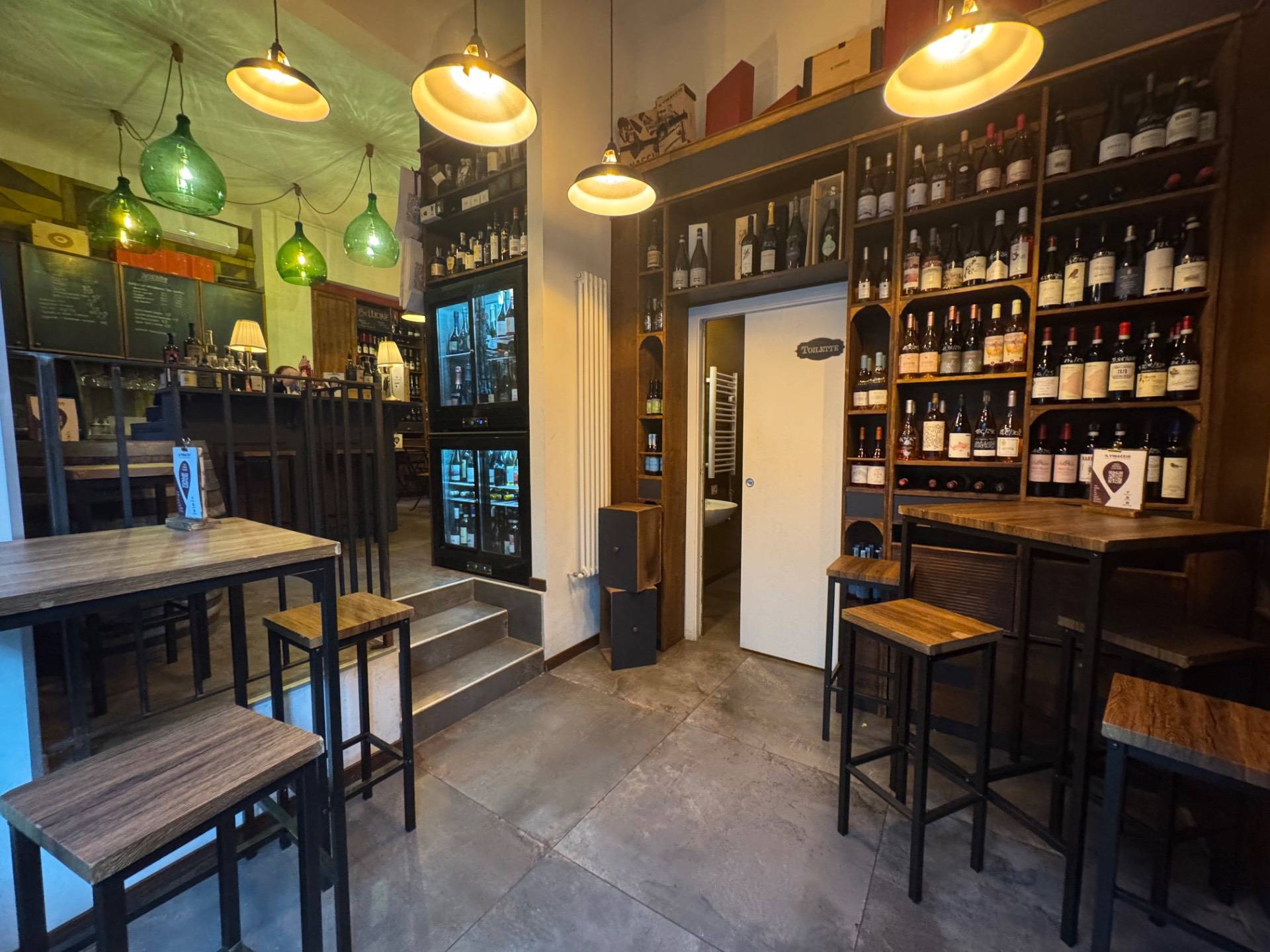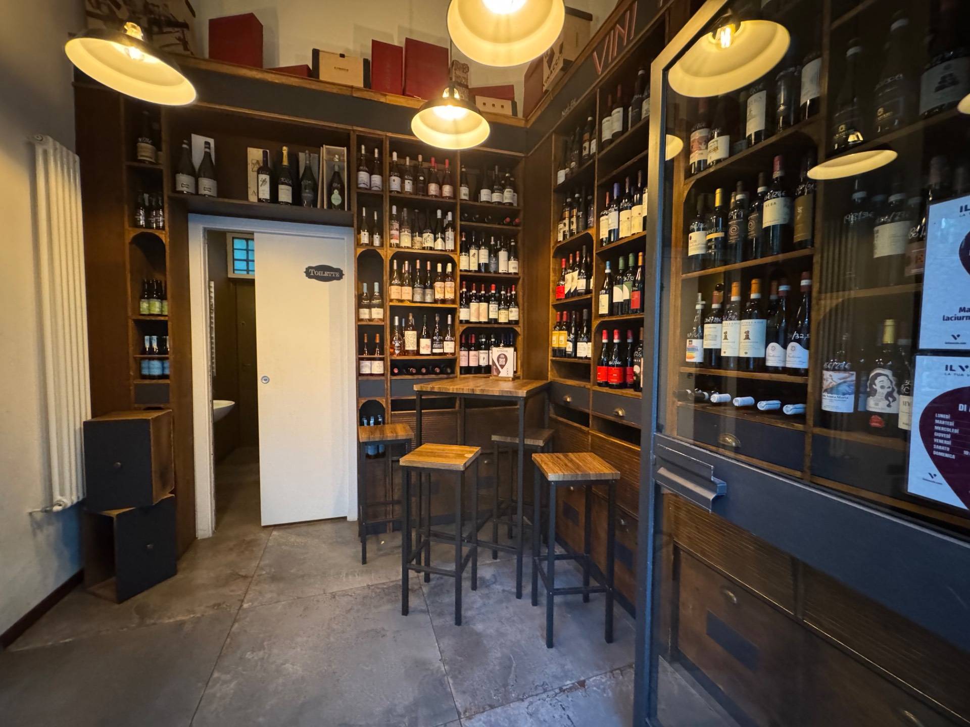 La soluzione adibita ad attivit di enoteca ed cos distribuita, ingresso su area somministrazione food-beverage con attiguo servizio a norma di legge per i clienti, bancone bar a vista ed annessa area spogliatoio/servizio per il personale dipendente.