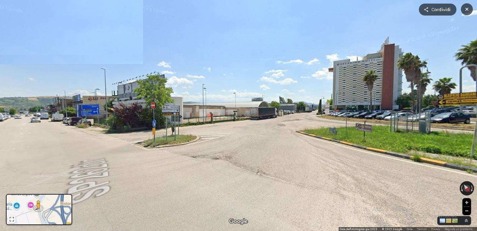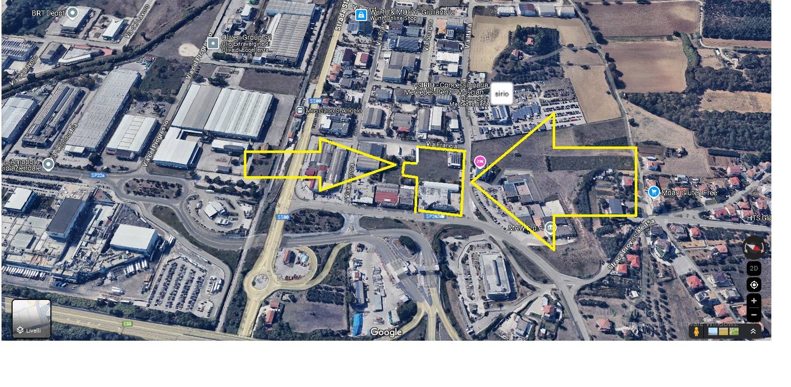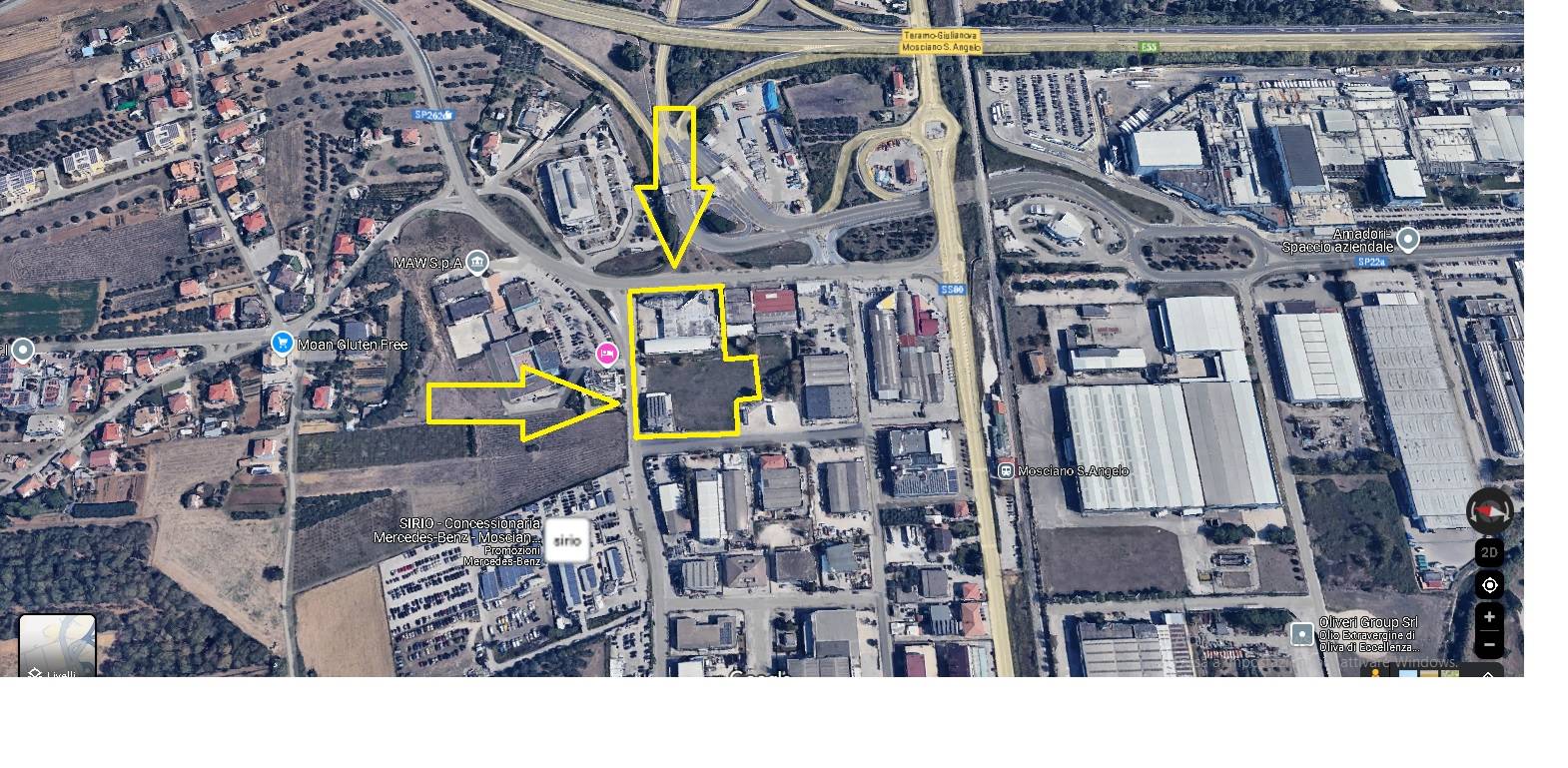 La propriet composta da edificio commerciale di mq 2.400 circa con ampia area di circa 7.600 mq ad uso parcheggi, magazzino e deposito.