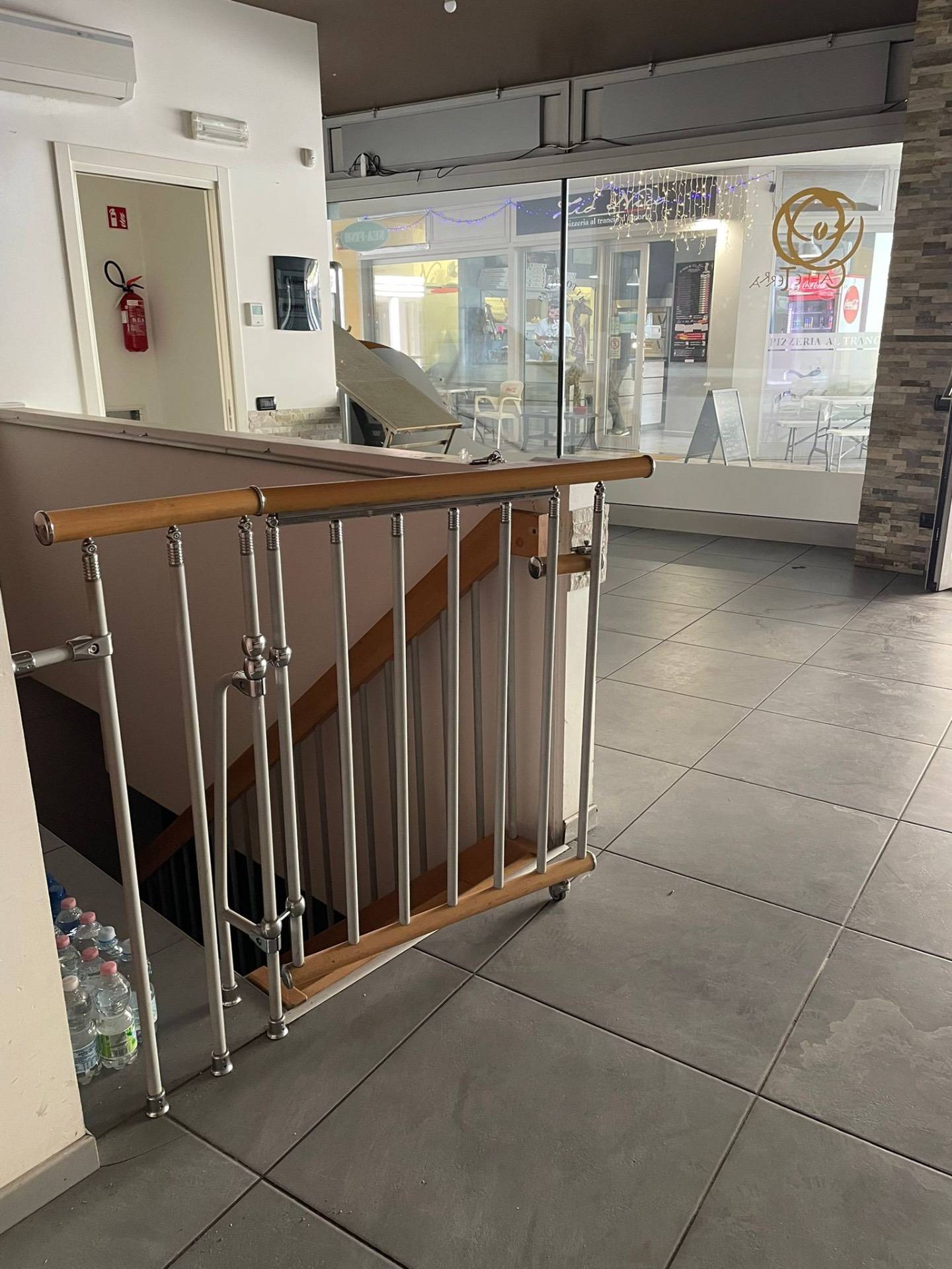 Limmobile si sviluppa su due livelli collegati da elegante scala in legno, ed cos composto: Piano terra (entrata) con vetrina fronte portici, ambiente open space ideale per accoglienza clienti o area espositiva; Piano inferiore con secondo ingresso indipendente, ulteriore spazio operativo/ufficio; Doppi servizi igienici, uno per piano.
