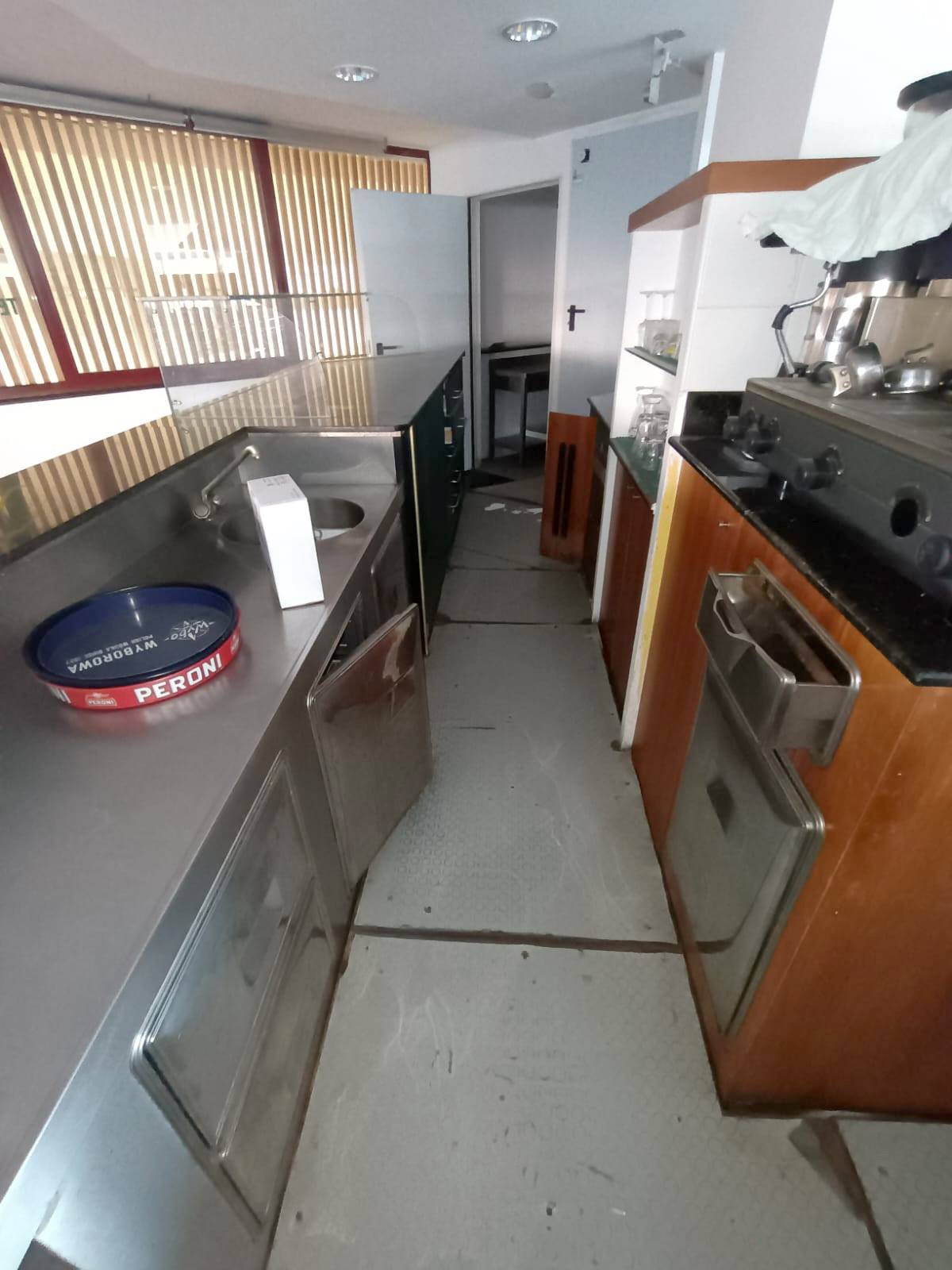 Ingresso su area esterna, area di vendita, ripostiglio, nr. 3 bagni . All'attualit l'immobile dotato dei seguenti arredi ed attrezzature: Arredo Sala Arredo banco bar e banco self service Attrezzatura completa cucina, fuochi, cuocipasta, forno, cella, banchi di lavoro, griglia a carbone, forno pizza Tornati 3 camere.