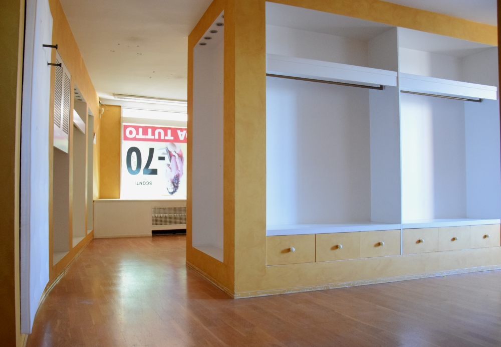 In zona centrale del paese e in posizione con forte passaggio pedonale e veicolare, proponiamo in affitto ampio negozio con due vetrine fronte strada, attualmente disposto in open space per una superficie complessiva di 130 mq. Attualmente predisposto per negozio ed esposizione di abbigliamento, si presta comodamente per altre soluzione di vendita al dettaglio o studi professionali.