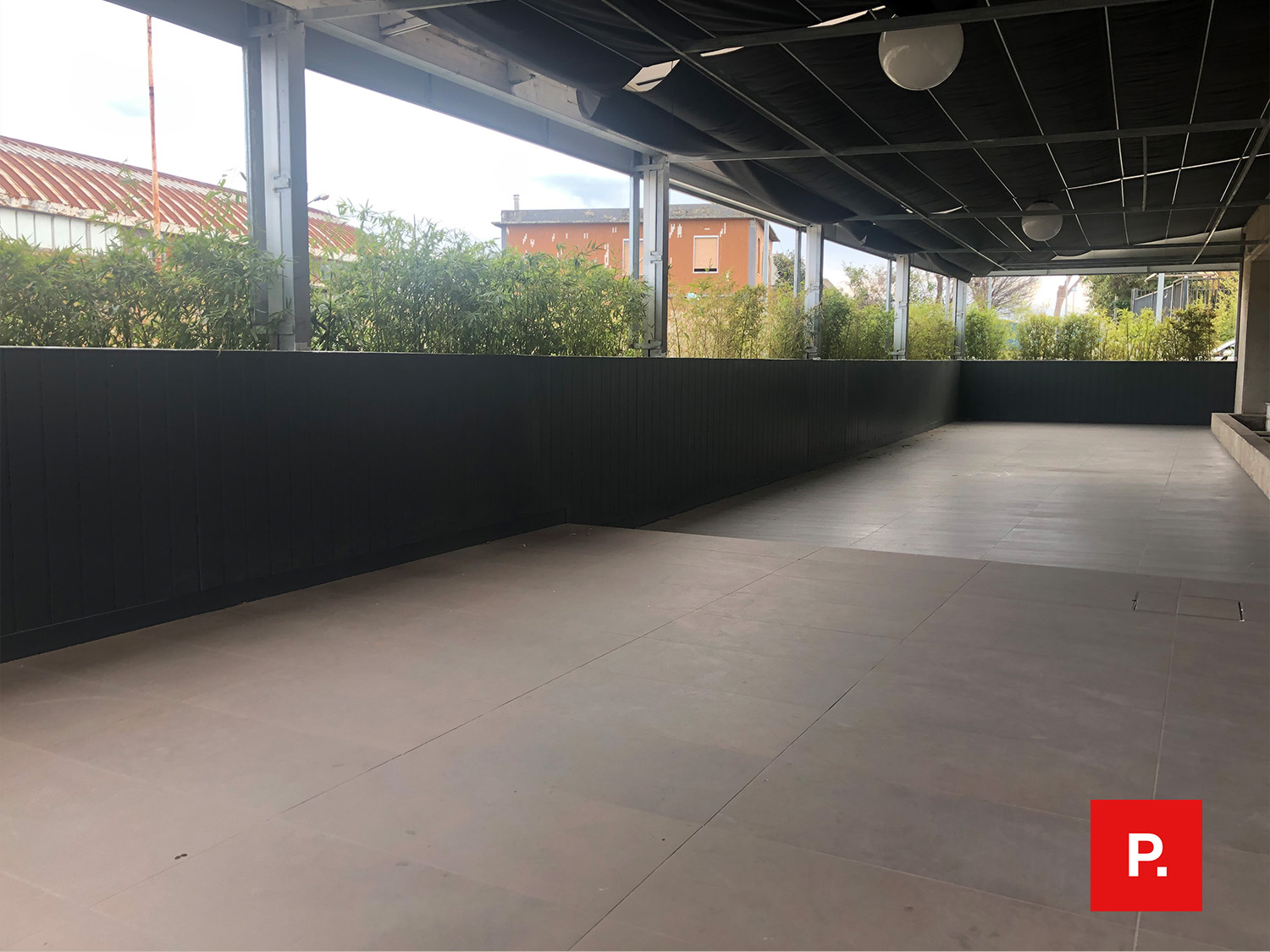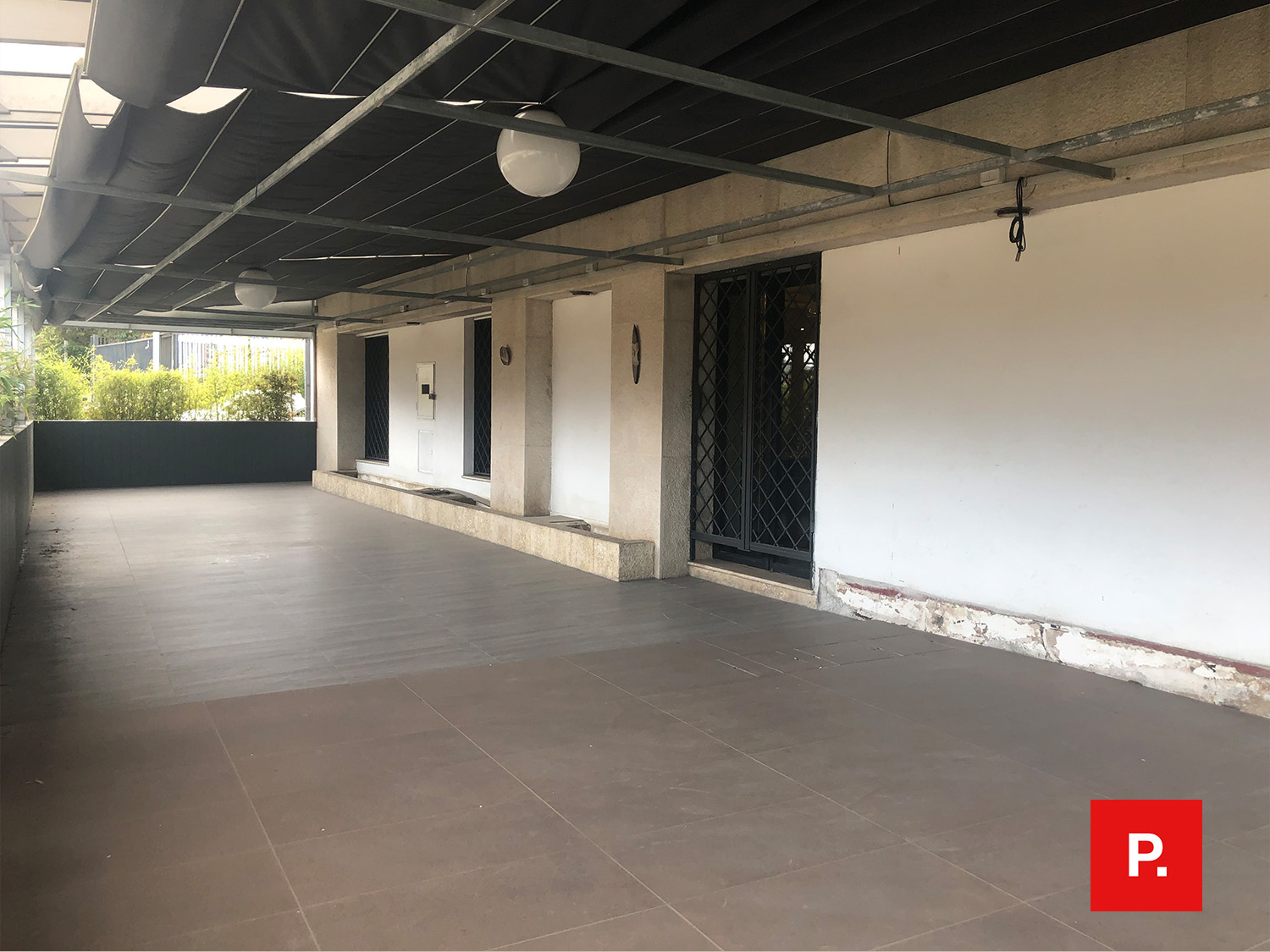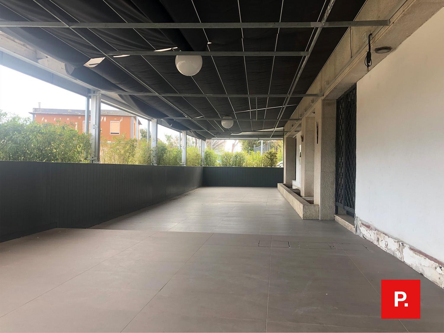 Ampio gazebo esterno pavimentato che da continuit alla sala. Un ampio cortile rifinito garantisce una sala all'aperto.