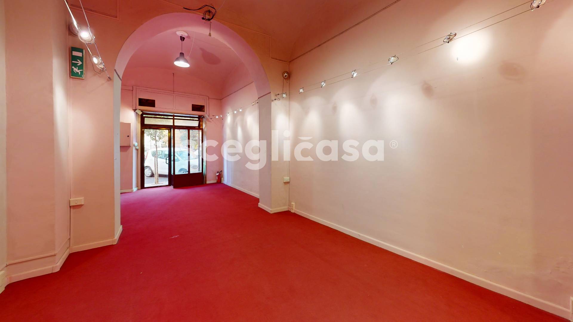 Limmobile dispone di ampia vetrina su strada e due bacheche espositive laterali, ed collocato al piano terra di un elegante palazzo Umbertino, che conserva affascinanti dettagli architettonici depoca come i soffitti a volta alti quasi 5 metri.