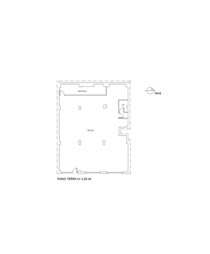 Internamente il locale si presenta come un unico grande vano open space, facilmente personalizzabile in base alle esigenze, con bagno e antibagno a norma e un comodo magazzino di servizio.