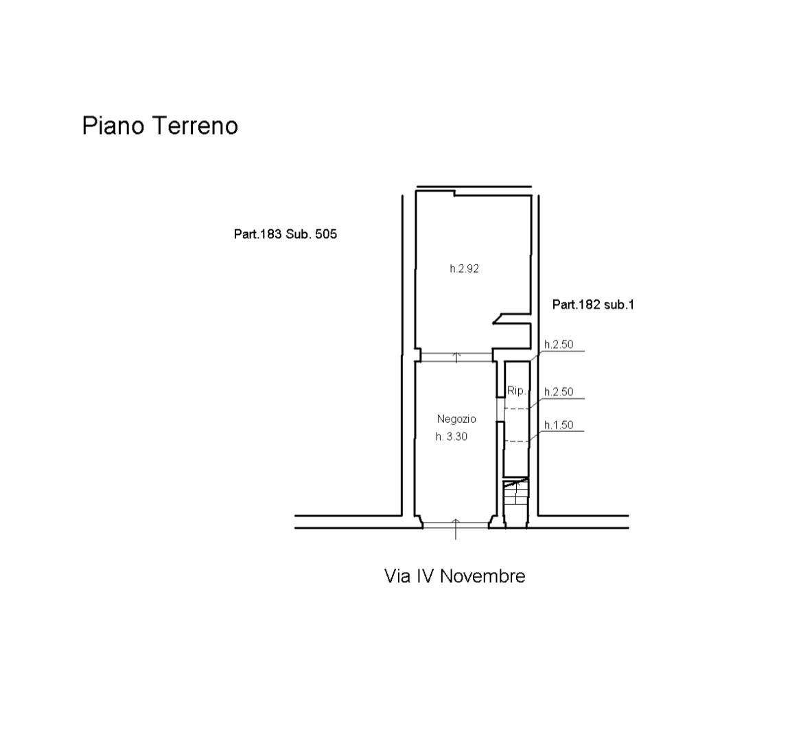 L'immobile composto da una prima stanza, con rispostiglio attualmente adibito a bagno, e da una seconda stanza leggermente rialzata rispetto alla prima che potrebbe essere utilizzata o come superficie di negozio o come magazzino/retrobottega.