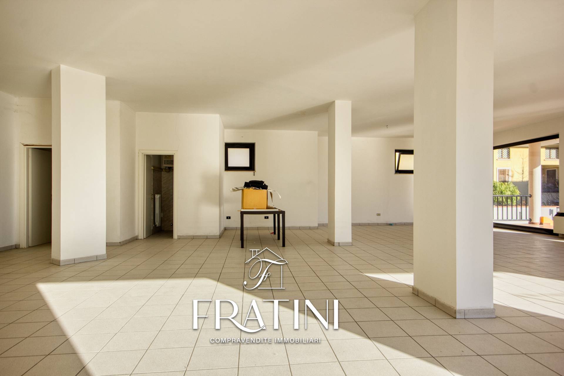 Internamente si presenta come un unico ambiente open space, senza divisori, ad eccezione dei due bagni, risultando particolarmente versatile e adatto a diverse tipologie di attivit commerciali, showroom o studi professionali.