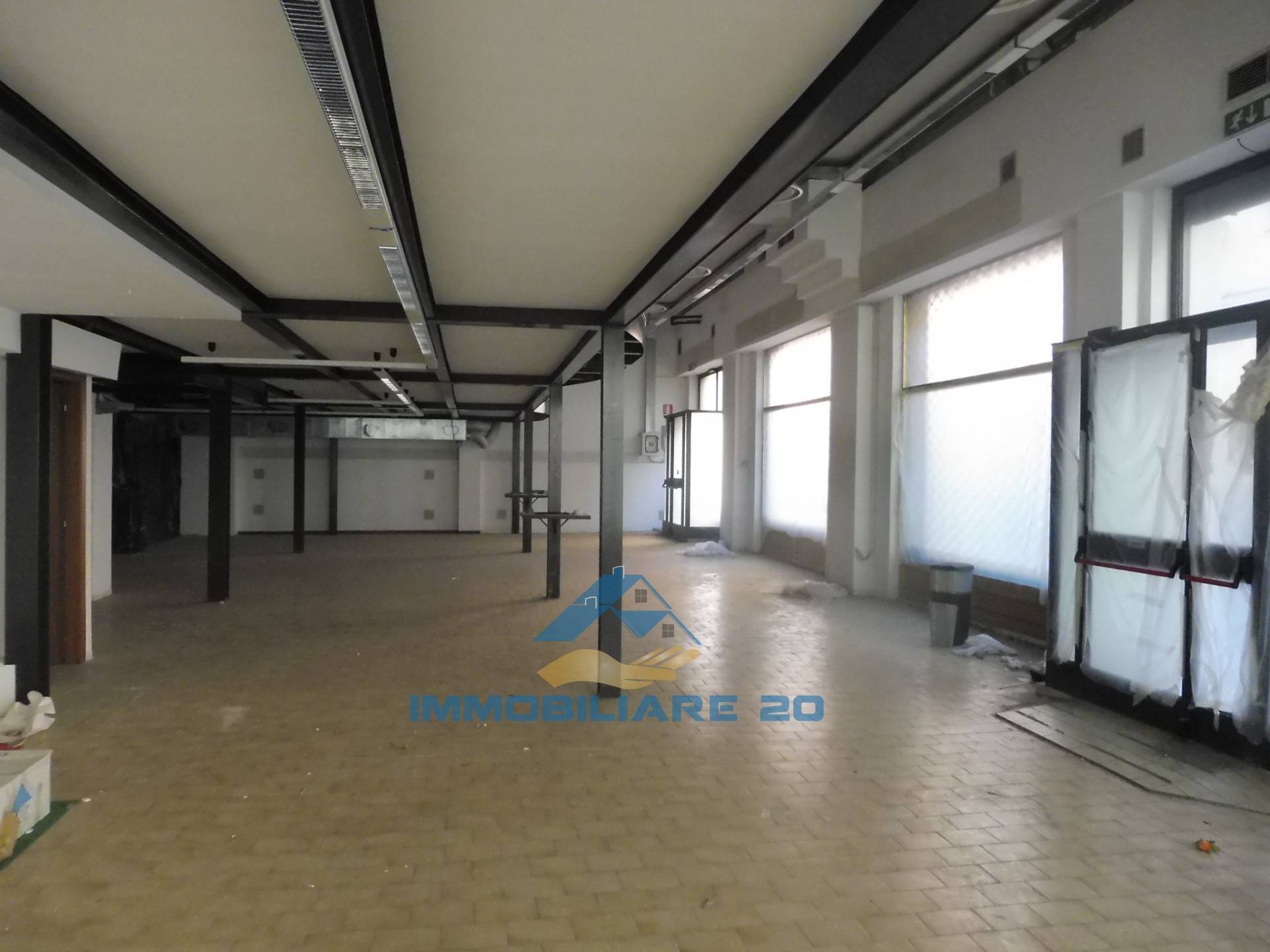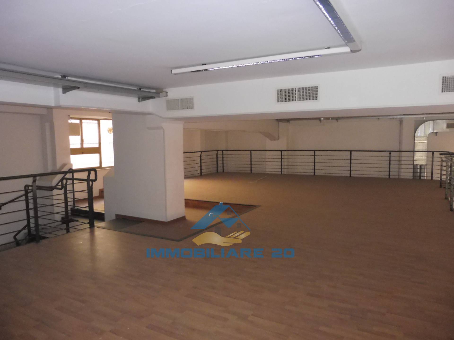 RIF. A1067 : in AFFITTO a Teramo in centro storico, Via Cesare Battisti, a pochi metri da Corso San Giorgio , LOCALE COMMERCIALE di MQ. 350 (Mq. 250 piano terra e Mq. 100 soppalcati) con n. 8 vetrine ad angolo su strada di forte transito veicolare e pedonale.