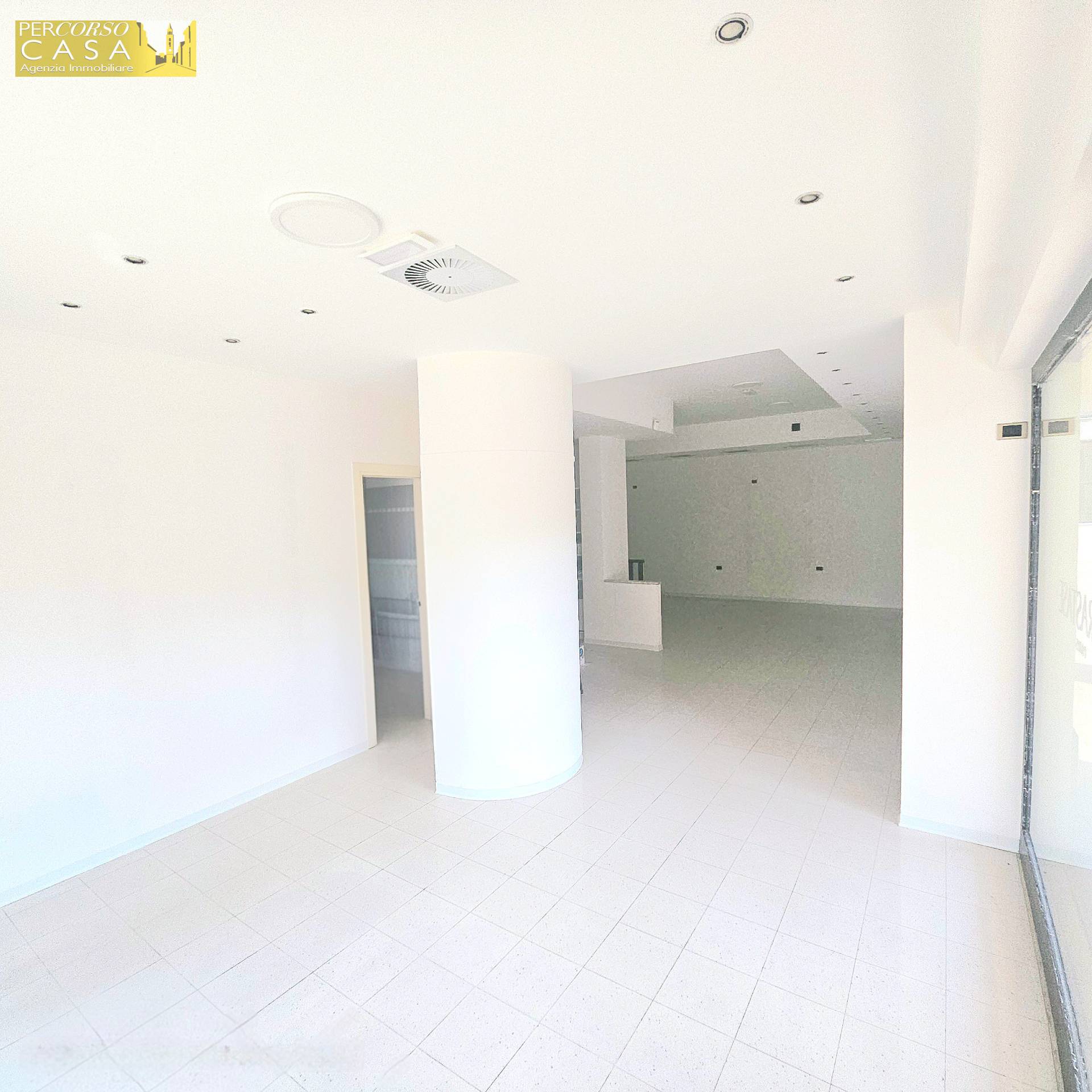Il negozio in OTTIME CONDIZIONI DI MANUTENZIONE, con pavimento in gres e climatizzazione caldo freddo con pompa di calore e fan coil. L'immobile con ampi spazi verdi condominiali antistanti situato in un quartiere a ridosso del centro citt, con numerose attivit commerciali quali ufficio postale, farmacia supermercati scuole e parcheggi.