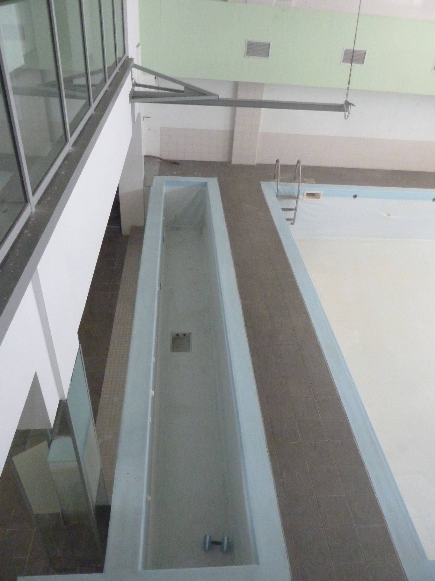 - Piano terra composto da: ingresso con zona reception, piscina, vasca, bar, uffici, ludoteca, sala aerobica, spogliatoi uomo e donna, bagni e docce, ripostiglio e sala impianti.