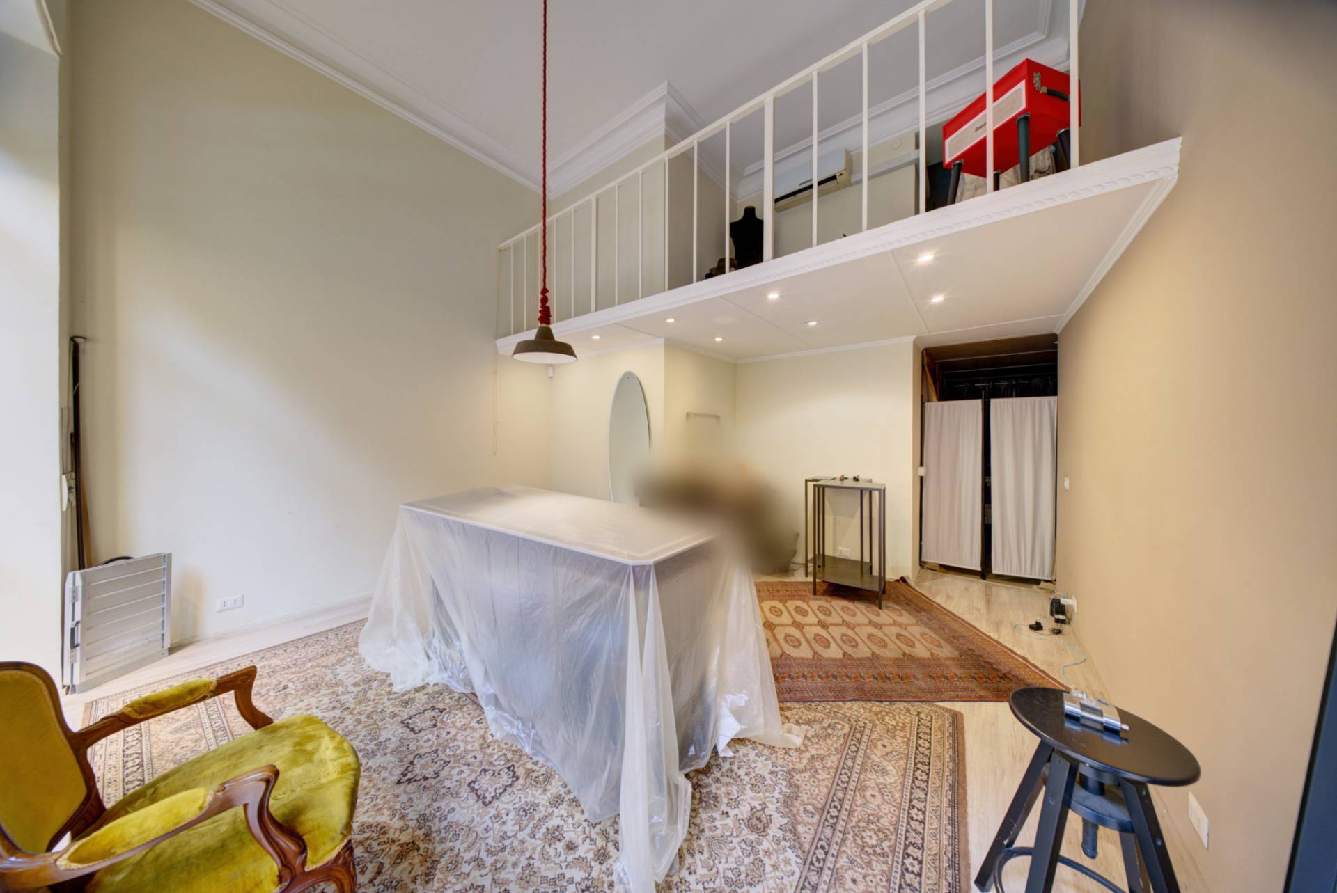 L'immobile, composto da due locali, uno fronte strada ed il secondo con uscita sull' interno cortile, soppalco funzionale ottimo per creare un'ulteriore zona di lavoro, bagno esterno e due vetrine su Corso Racconigi.