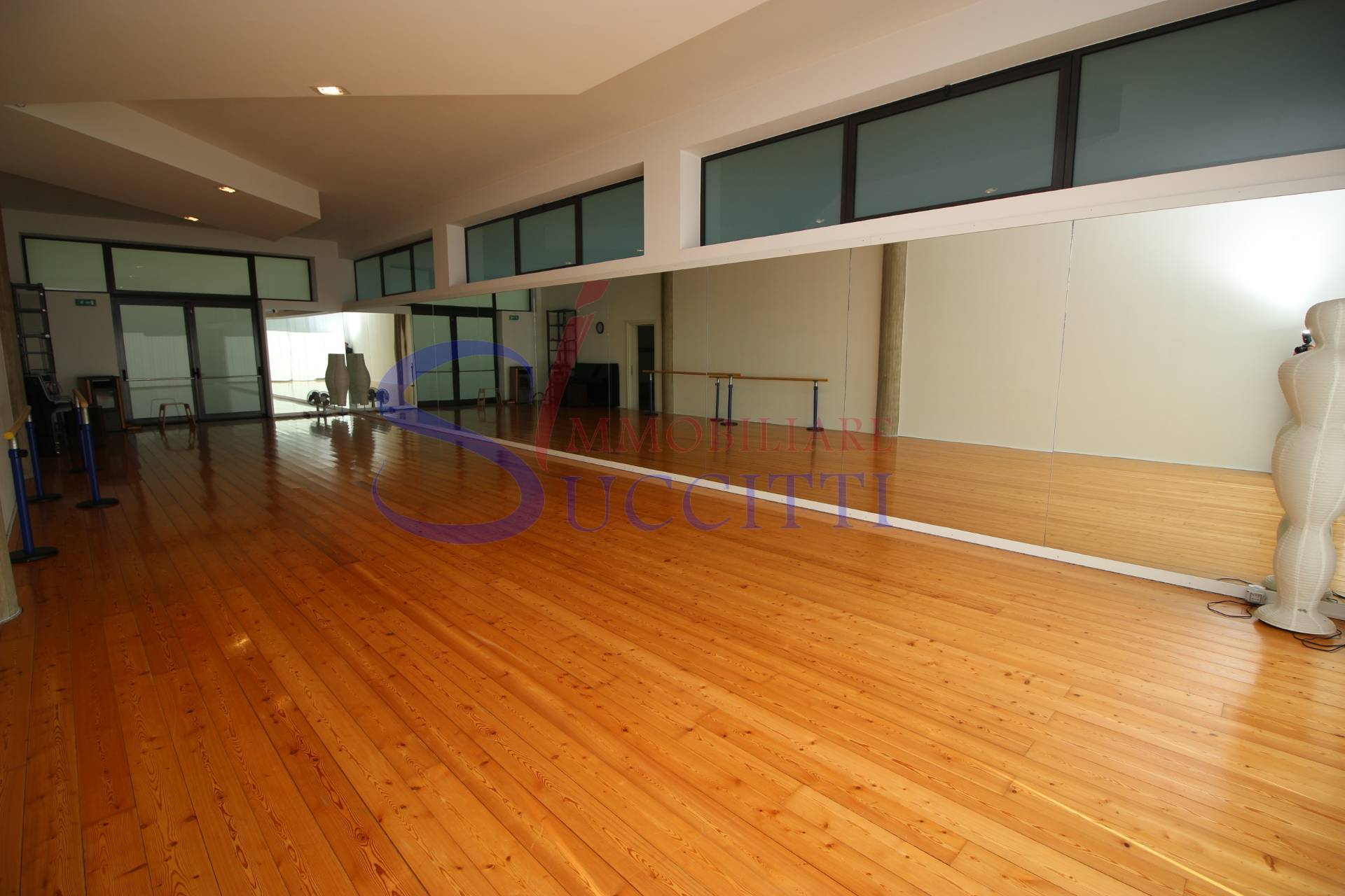 Locale commerciale in locazione a Tortoreto Lido (TE). In prossimit della Statale Adriatica si propone la locazione di un locale commerciale della superficie interna di circa 200 mq. Il locale composto da una zona di ingresso, due grandi sale attualmente attrezzate come sala da ballo con pavimento in parquet, locale spogliatoio e bagno; area esterna di ulteriori mq 200 circa.