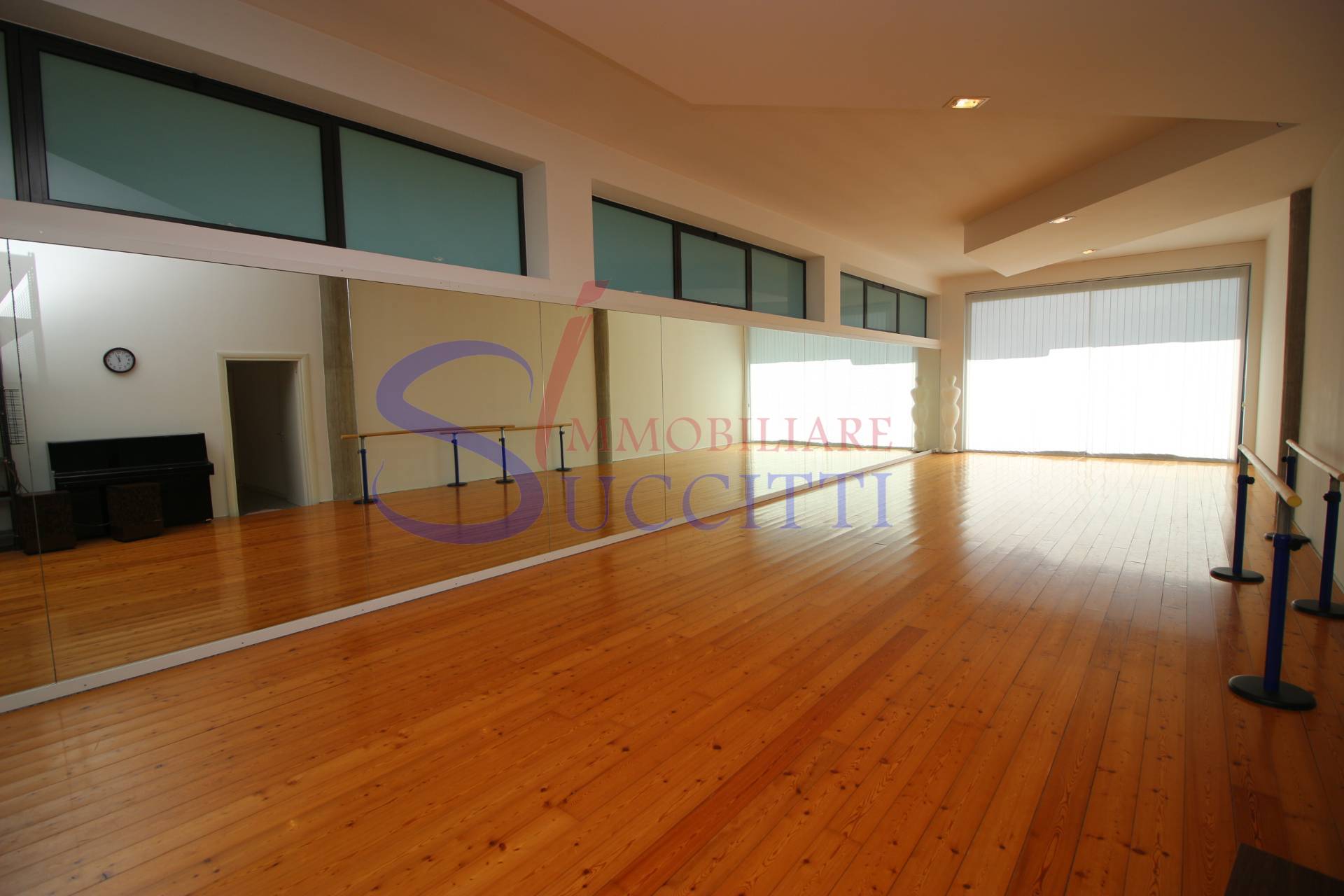 Locale commerciale in locazione a Tortoreto Lido (TE). In prossimit della Statale Adriatica si propone la locazione di un locale commerciale della superficie interna di circa 200 mq. Il locale composto da una zona di ingresso, due grandi sale attualmente attrezzate come sala da ballo con pavimento in parquet, locale spogliatoio e bagno; area esterna di ulteriori mq 200 circa.