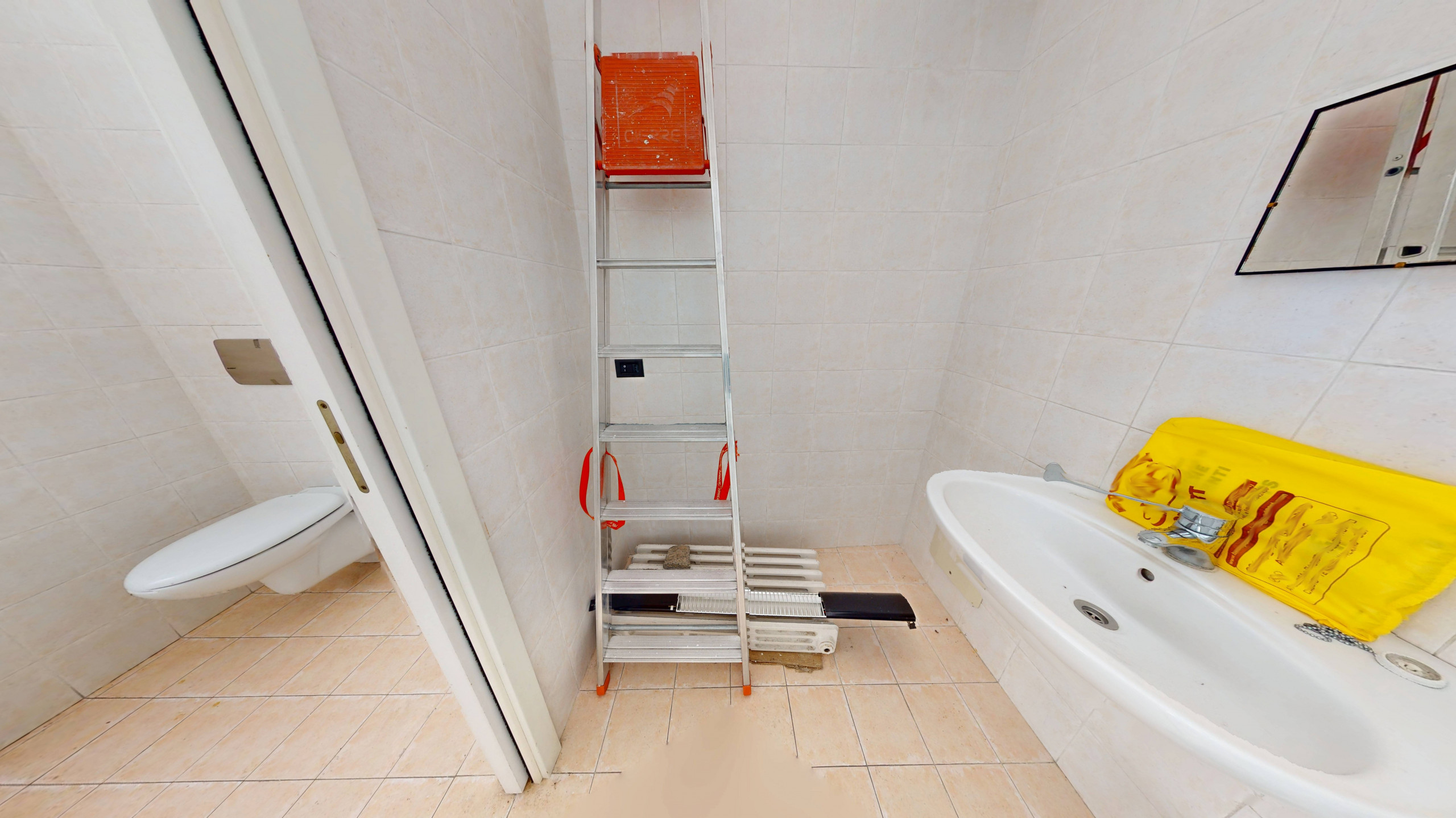 A completare troviamo due disimpegni che conducono allo stesso servizio, uno di essi accessibile dall'ambiente principale, l'altro direttamente tramite la porta esterna posizionata sul passaggio pedonale.