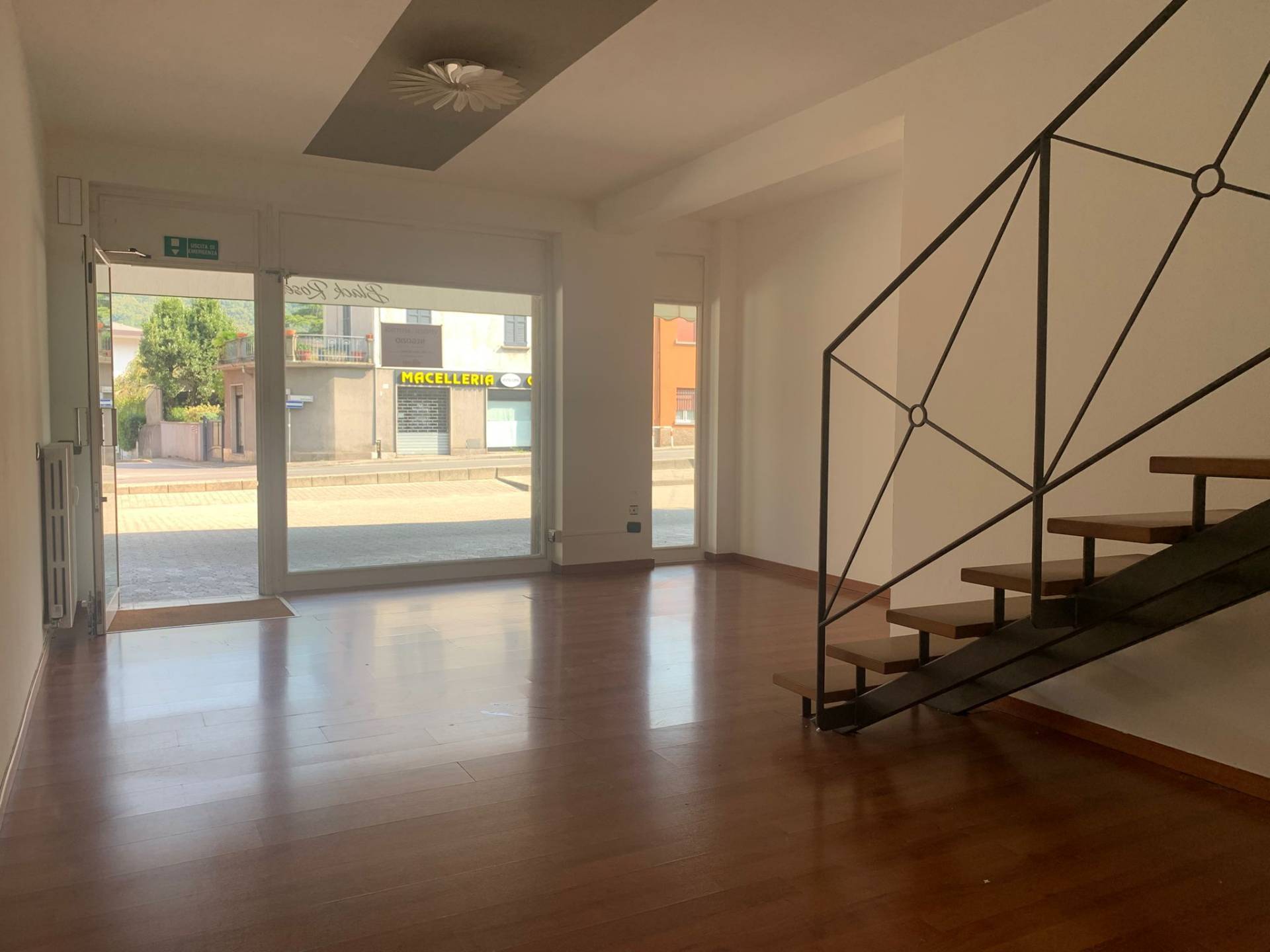 VALMADRERA - In posizione centrale di forte passaggio e con comodit di parcheggio, affittasi NEGOZIO/UFFICIO dotato di ampia vetrina, disposto su 2 livelli oltre piano ammezzato, magazzino e bagno per totali mq 97 commerciali.