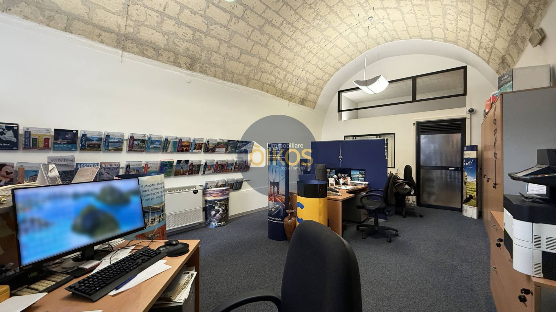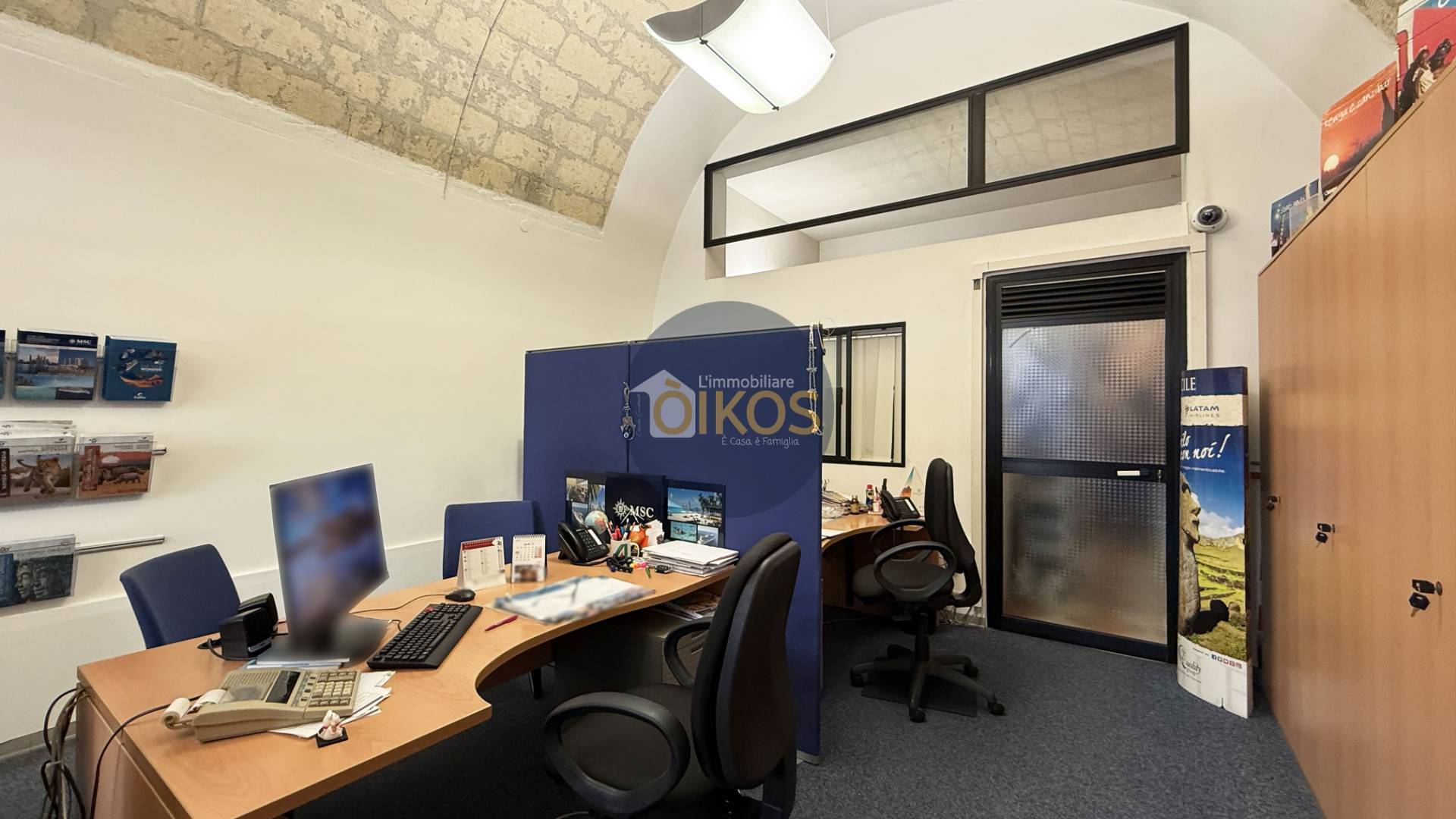 Entrando tramite la porta vetrata che garantisce massima visibilit, sarai accolto da un ampio open space di dove la tradizione pugliese protagonista con le volte a botte in tufo a vista, capaci di donare pregio e calore a qualsiasi attivit.