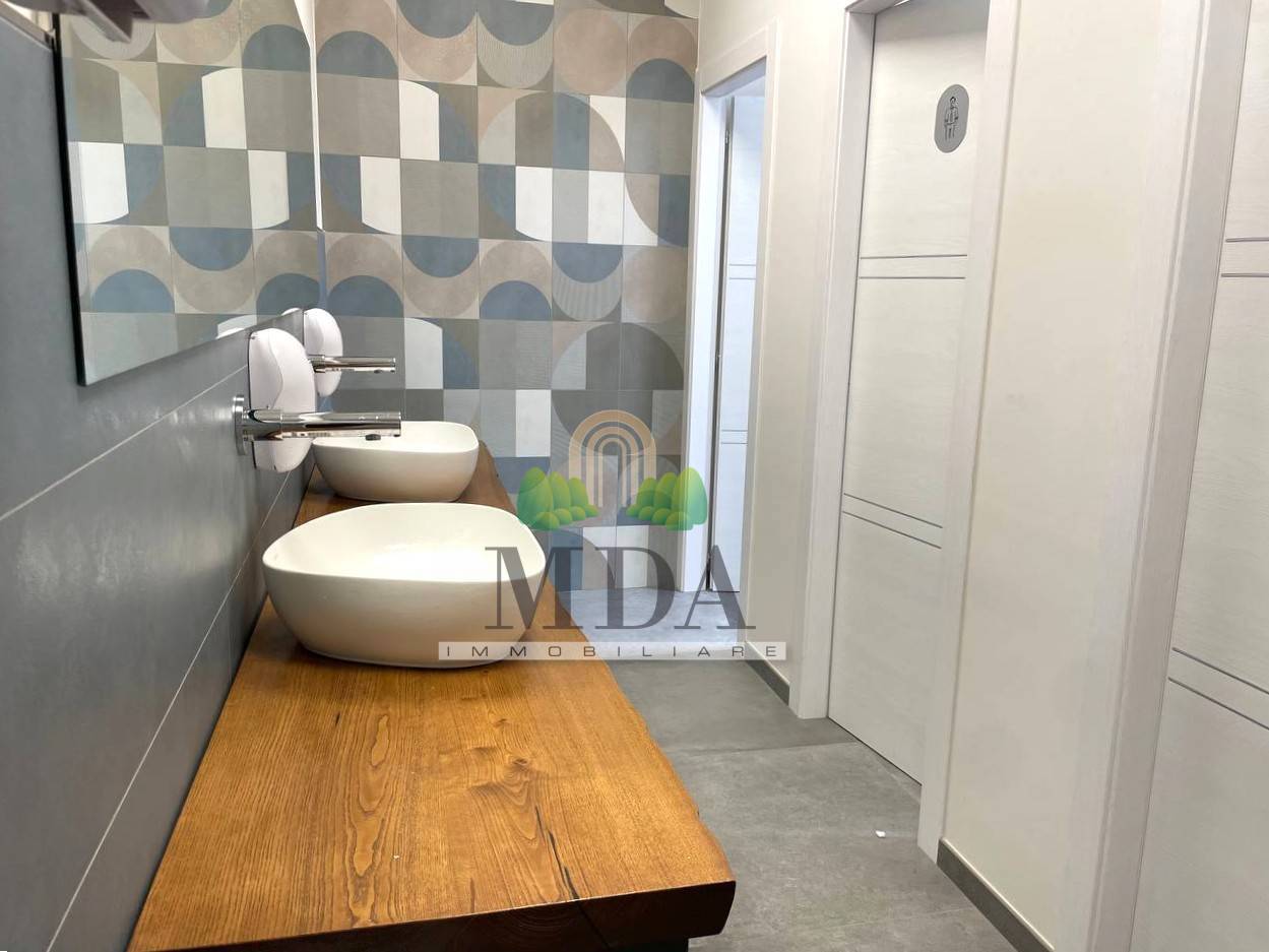 Per quanto riguarda i servizi, limmobile dispone di otto bagni uomo/donna, due bagni per disabili (per un totale di cinque bagni per piano) e un ulteriore bagno attualmente da ultimare al piano seminterrato.
