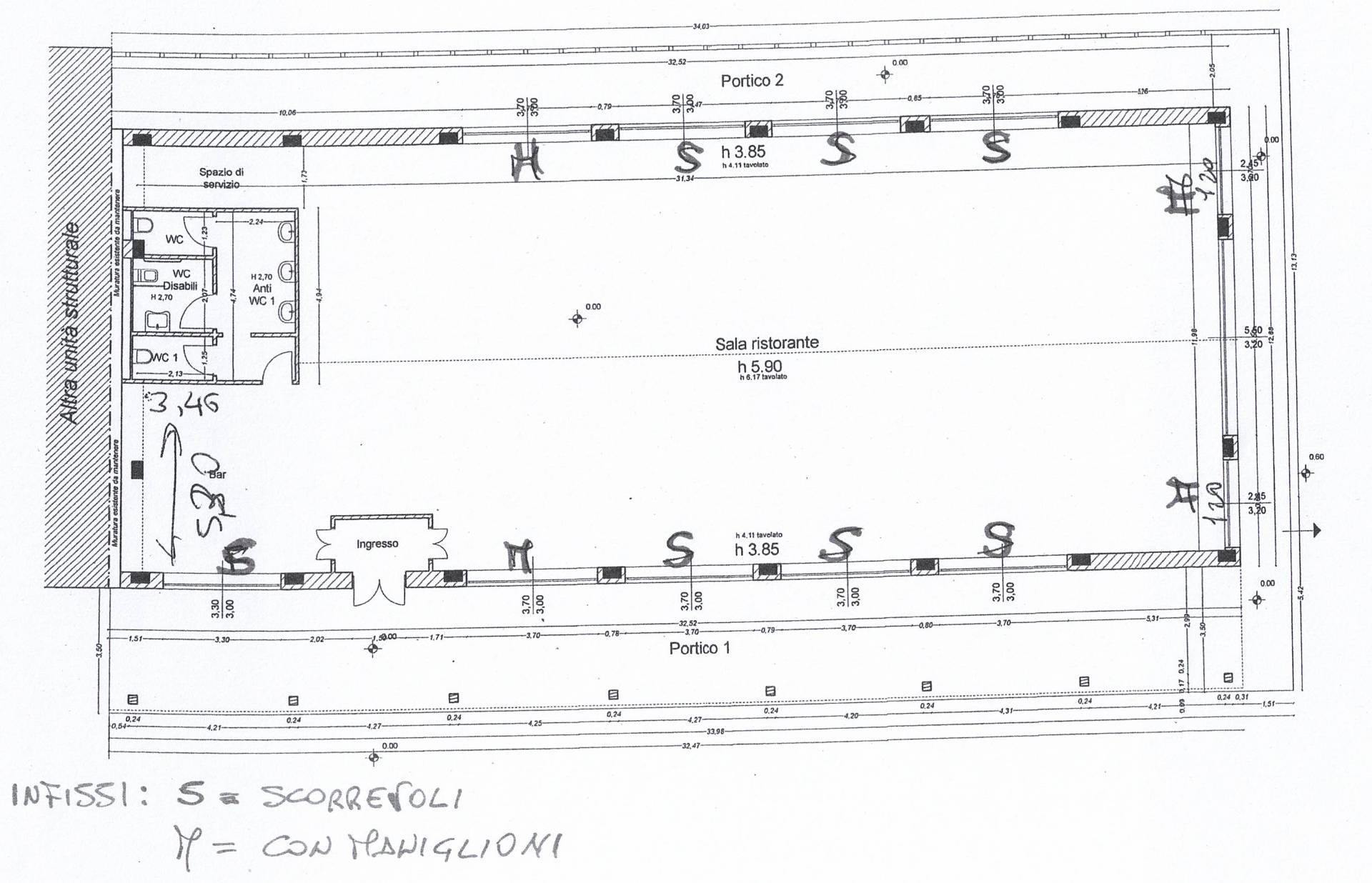 L'' immobile ha un totale di aree coperte al piano terra pari a circa 620 mq suddivisi in un ampio locale di mq 420, con ingressi separati e comunicanti, quattro bagni, oltre locale cucina di mq 200. Ampio porticato di mq 250. Lo spazio esterno carrabile di circa 2500 mq. Tutto il perimetro della propriet in oggetto recintato con cancellata.