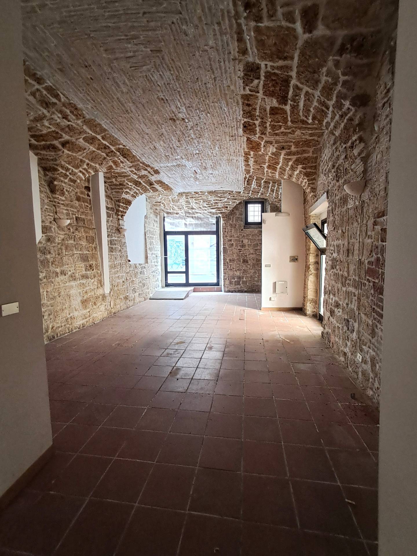 Ascoli Piceno in centro storico, caratteristico locale commerciale di mq. 125 lordi, sito al piano terra, completamente ristrutturato con volte reali in pietra a faccia vista, vetrina nuova, antibagno e bagno.