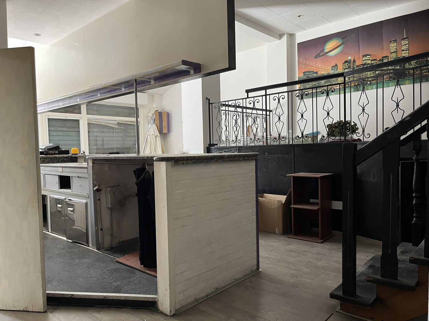 In precedenza l'immobile stato adibito a ristorante/bar, pertanto ad oggi risulta diviso in due ambienti: da una vetrina si accede ad un ampio locale con zona soppalco e dall'altra vetrina si entra nella zona utilizzata come cucina; i due ambienti sono collegati internamente e dotati di 2 bagni con antibagno.