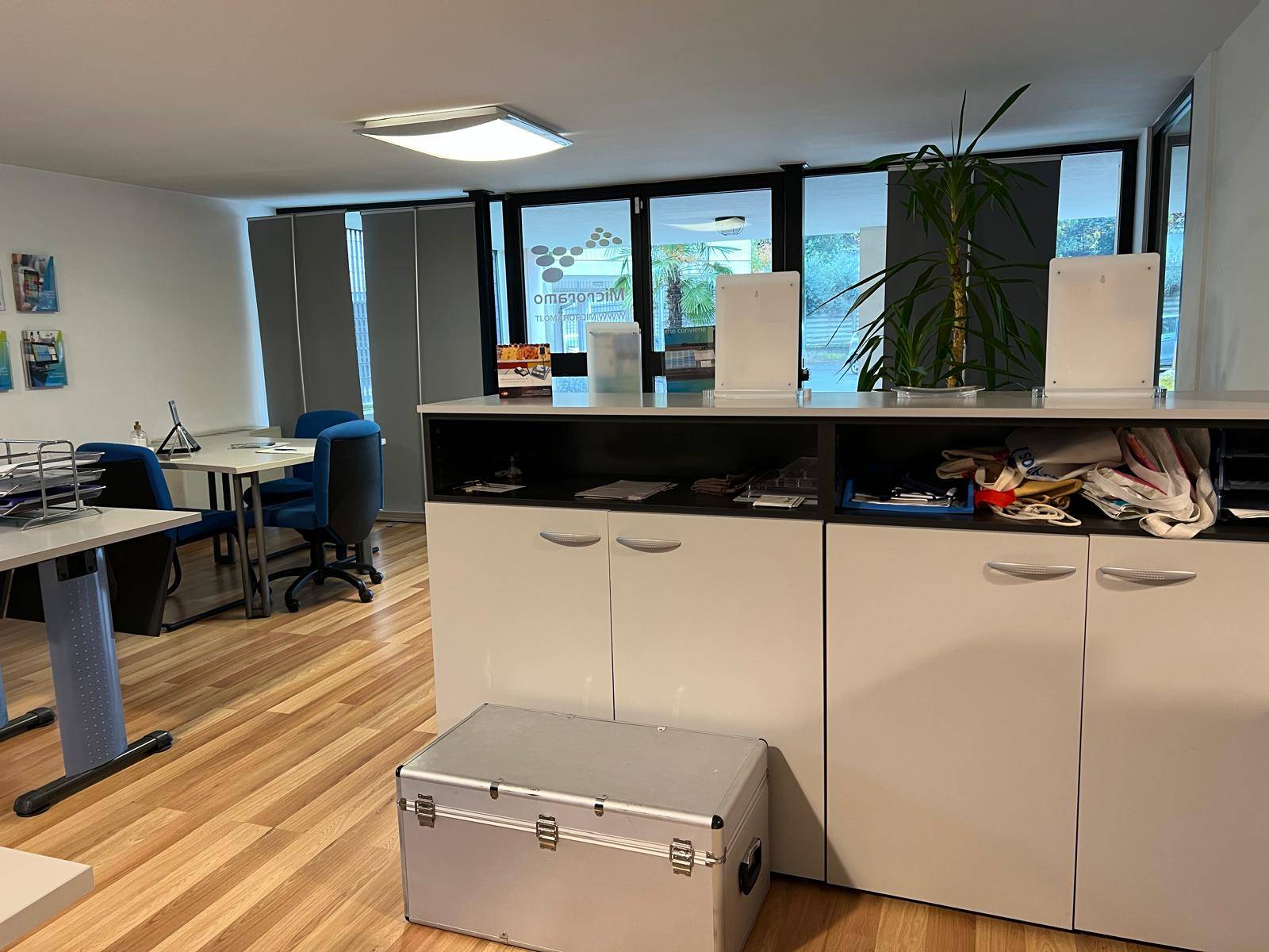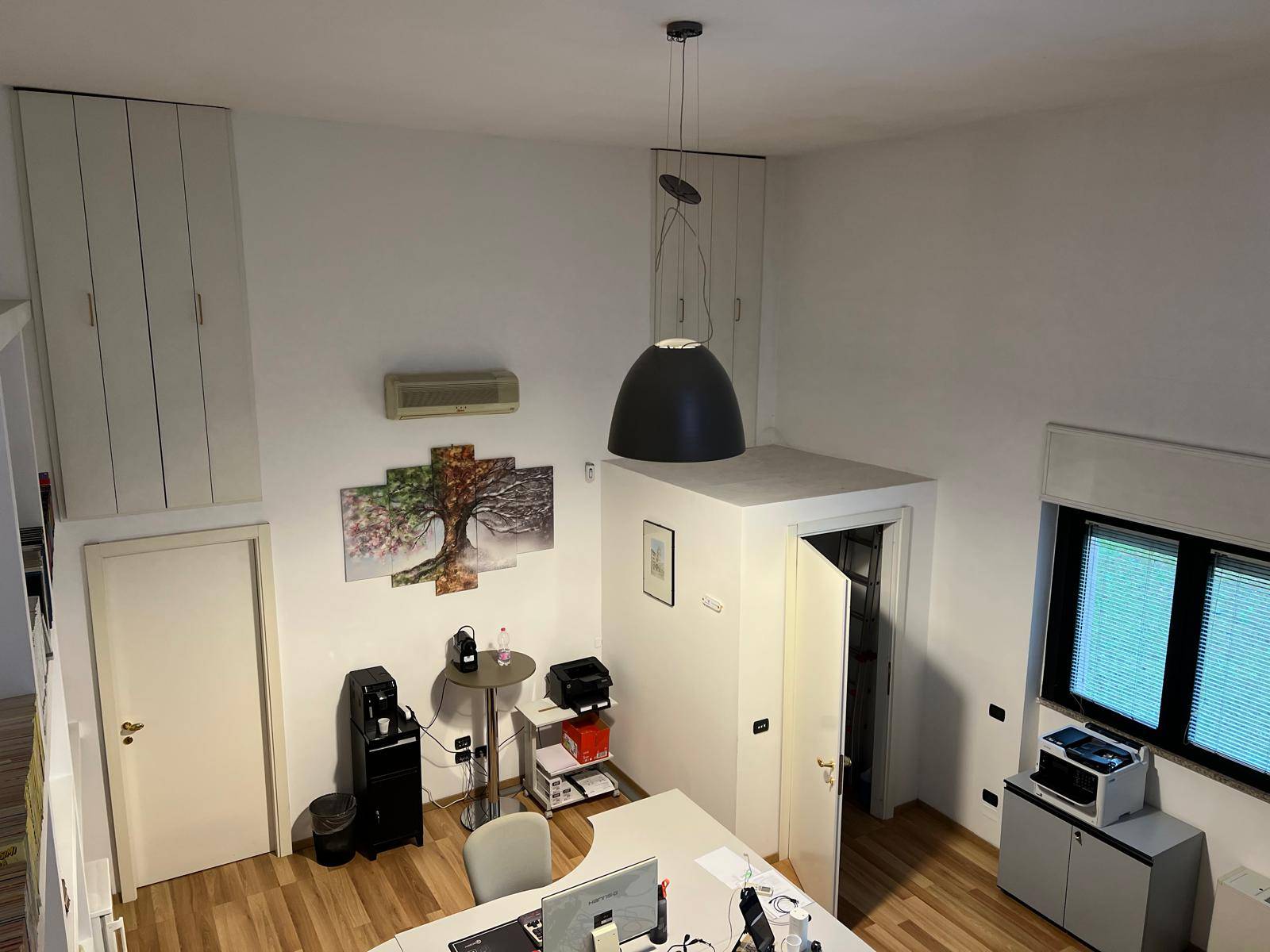Al piano terra l'open space attuale, di circa 90 mq, con altezza massima circa h 4,5 pu ospitare otto comode postazioni di lavoro.