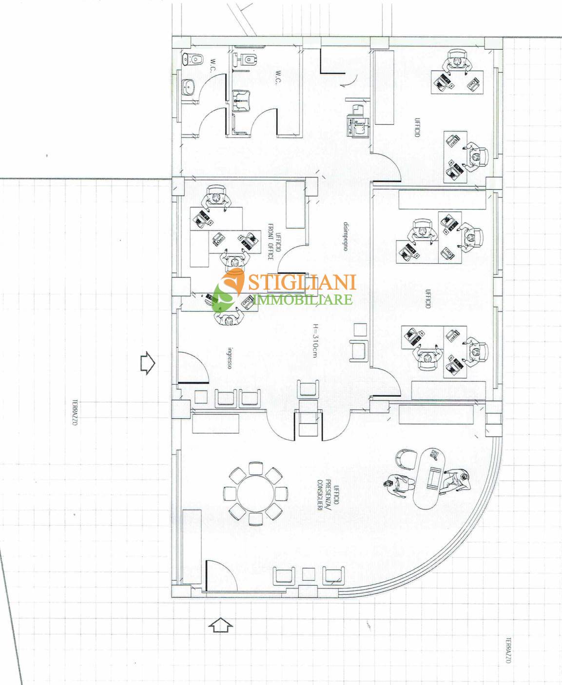 In zona via Campania, locale commerciale al piano terra di metri quadrati 200 circa attualmente adibito ad ufficio, con doppio ingresso composto da ampia sala, tre vani, due bagni e ripostiglio.
