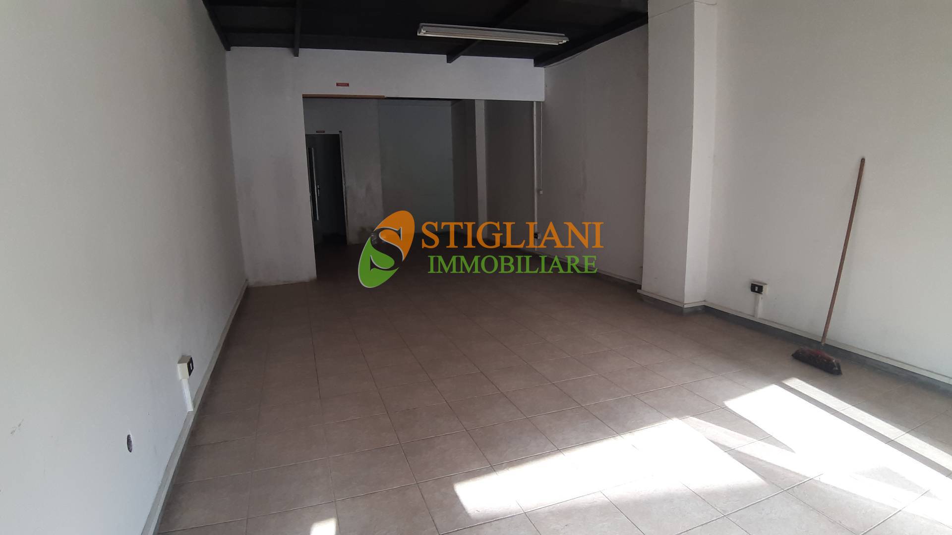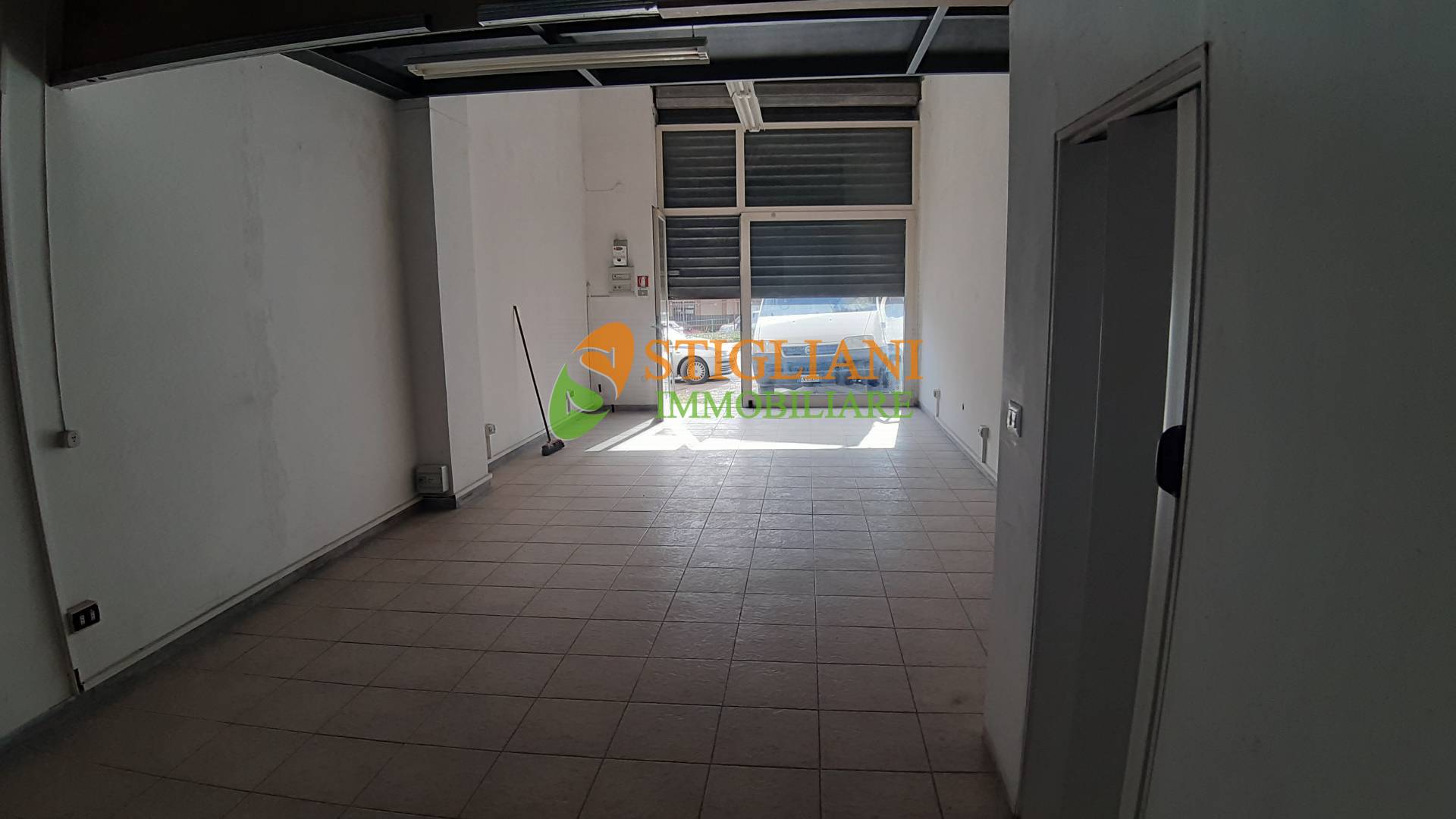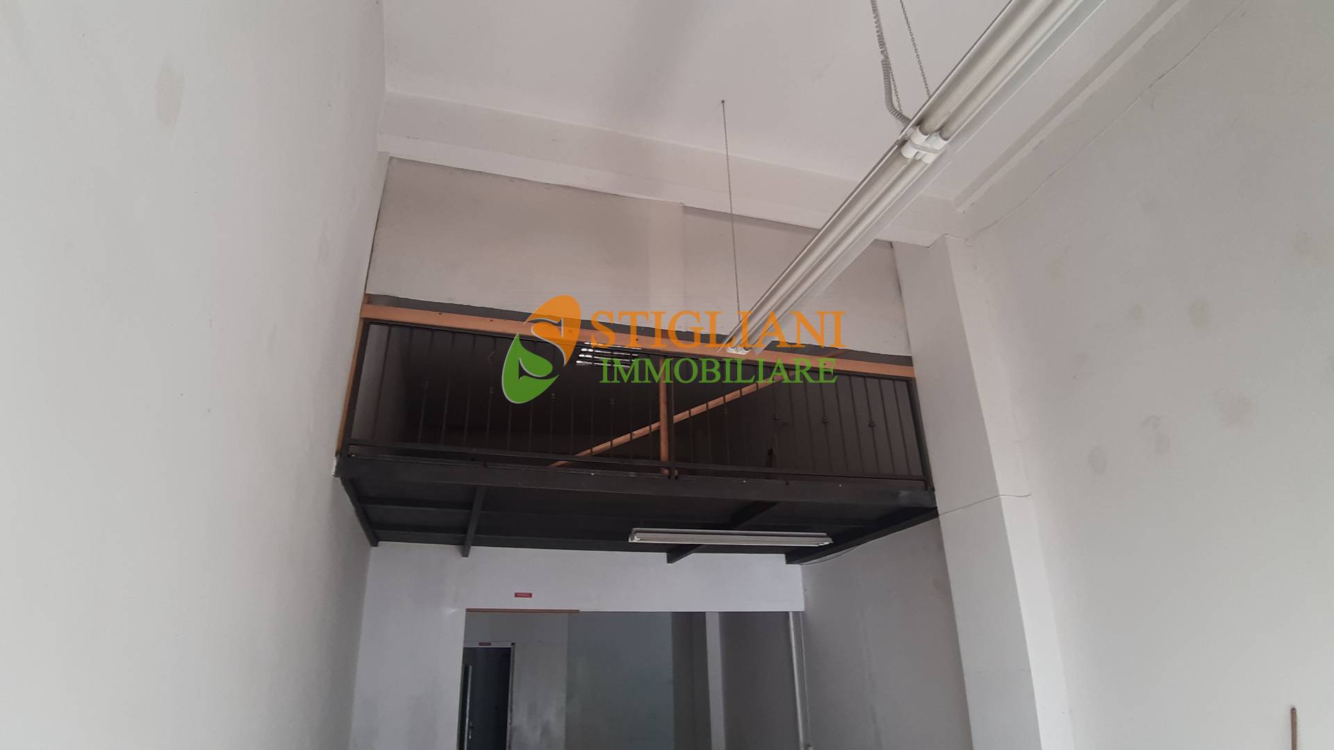 In zona di forte passaggio veicolare e pedonale, locale con vetrina fronte strada, di metri quadrati 50 circa, composto da vano unico con soppalco e bagno.