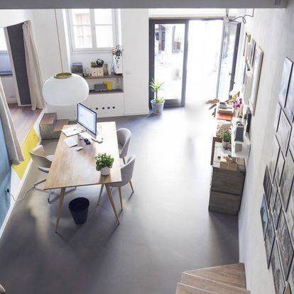 Il negozio al piano terra ha un ampio ingresso vetrato e tre finestre ad uso vetrina; la scala interna conduce al soppalco di circa 12 mq. Sul retro posto il servizio igienico privato con antibagno.