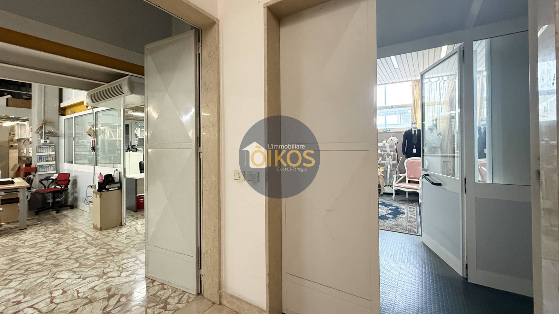 Laccesso avviene dal piano terra, da cui una comoda rampa di scale conduce al piano superiore; limmobile comunque servito da ascensore, elemento di grande valore per la movimentazione di persone e merci.